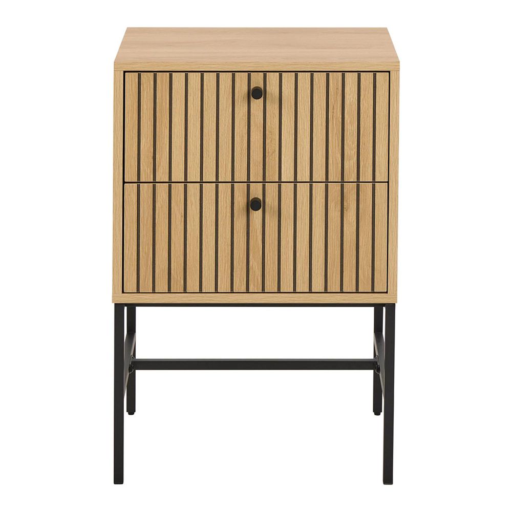 The Albany Bedside Table - 2 Drawer - Ribbed Oak - crafted from Melamine, MDF and Metal, finished in Oak, Modern style. Free UK standard delivery included.
