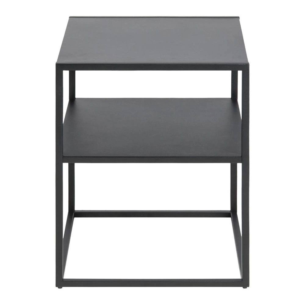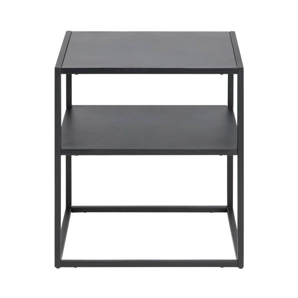 The Newton Bedside Table is a compact side table crafted from Metal with a Matt Black finish, perfect beside a sofa or armchair for keeping essentials within reach. Measuring W 45cm x D 40cm x H 50.5cm.
