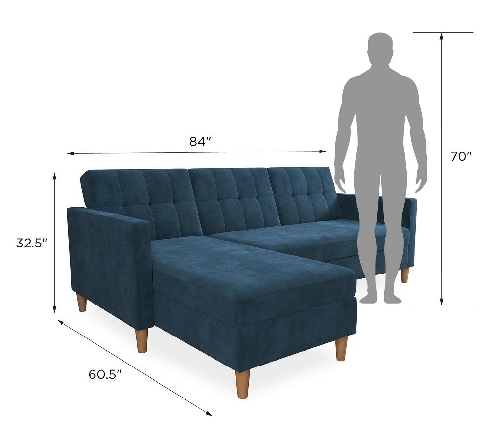 The Hartford Sectional Futon Sofa Bed - Storage - Chenille - 2112669UK - crafted from Fabric, finished in Blue, available in Blue, Modern style. Free UK standard delivery included.