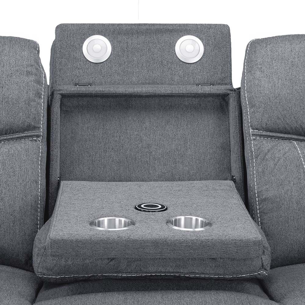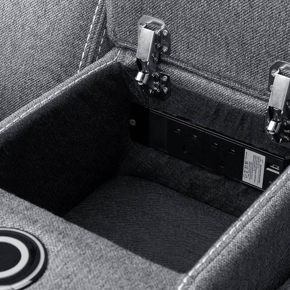 Our best selling tech sofa, Galaxy Tech Sofa is jam-packed with tech and features, the perfect set for any modern home. Available in Black Leather aire, Grey Leather aire and Grey Fabric, this set stands out with its contrast stitching, padded arms and centre console. Currently available as a 3 seater, 2 seater and armchair. See next page to view all the features in action3 Seater: Dropdown tableLED tap lights2 Cupholders Wireless chargerBluetooth speaker USB and USB-C Port