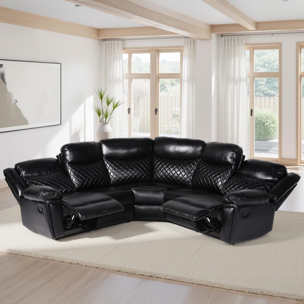 Myra Manual Recliner Corner Sofa - Black Faux Leather