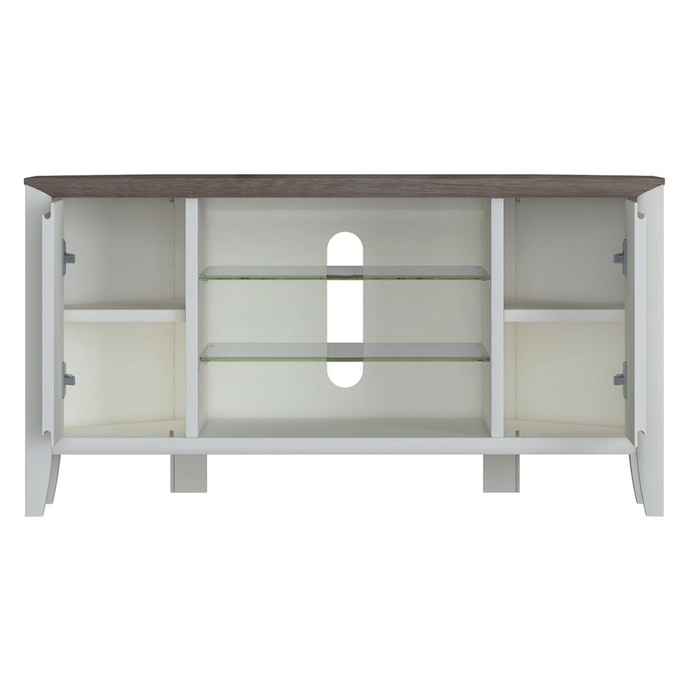 The Bergen Grey Washed Oak & Soft Grey Corner Entertainment Unit - 32in - crafted from Solids and Oak Veneers, finished in Grey Washed, available in Grey, Rustic style. Free UK standard delivery included.