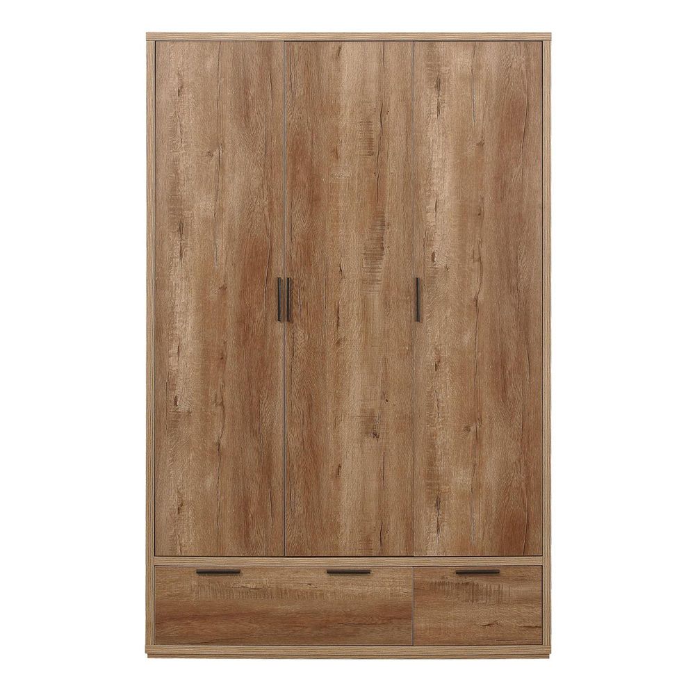 Stockwell Wardrobe - 3 Door - 2 Drawer - Rustic Oak