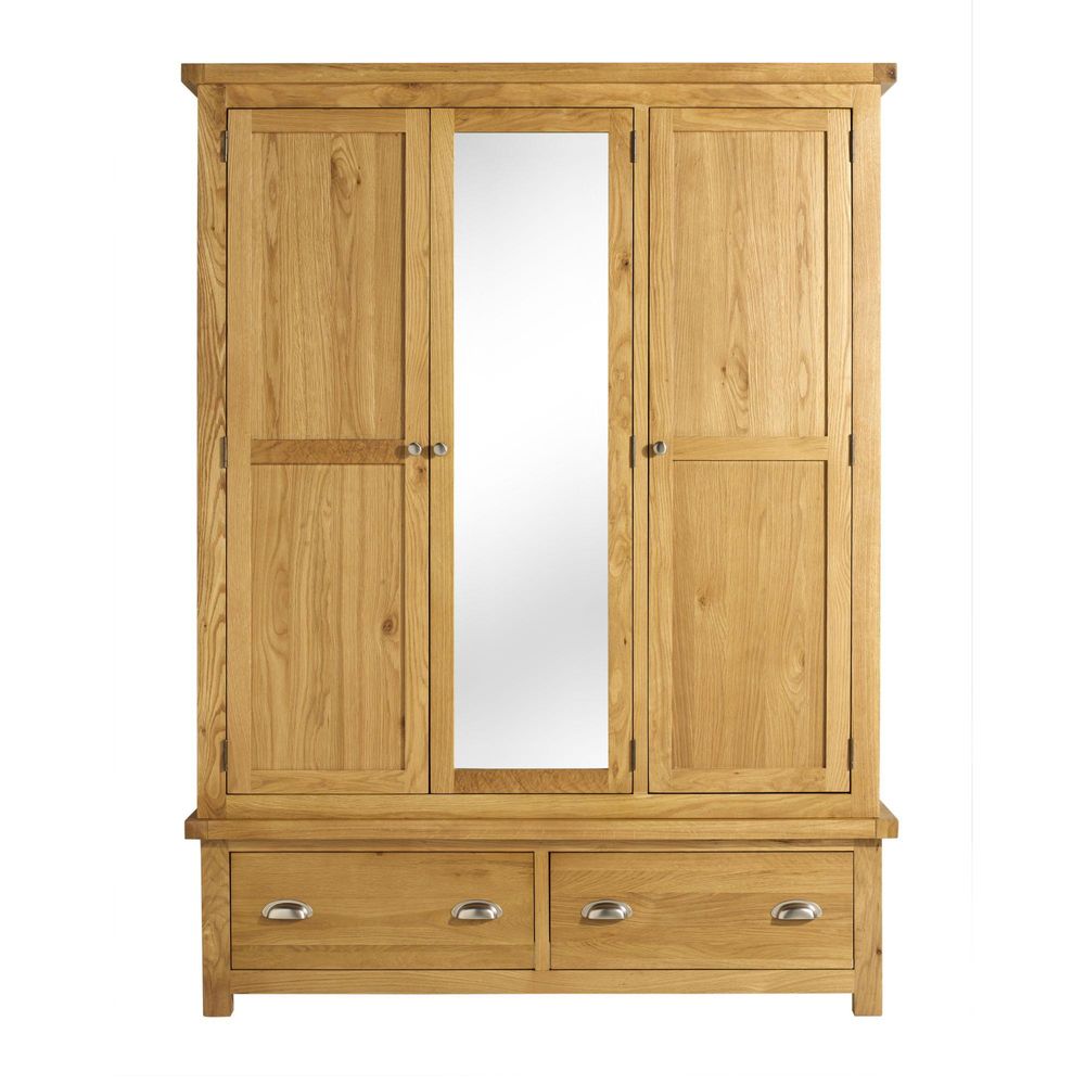 Woburn Mirror Wardrobe - 3 Door - 2 Drawer - Rustic Oak