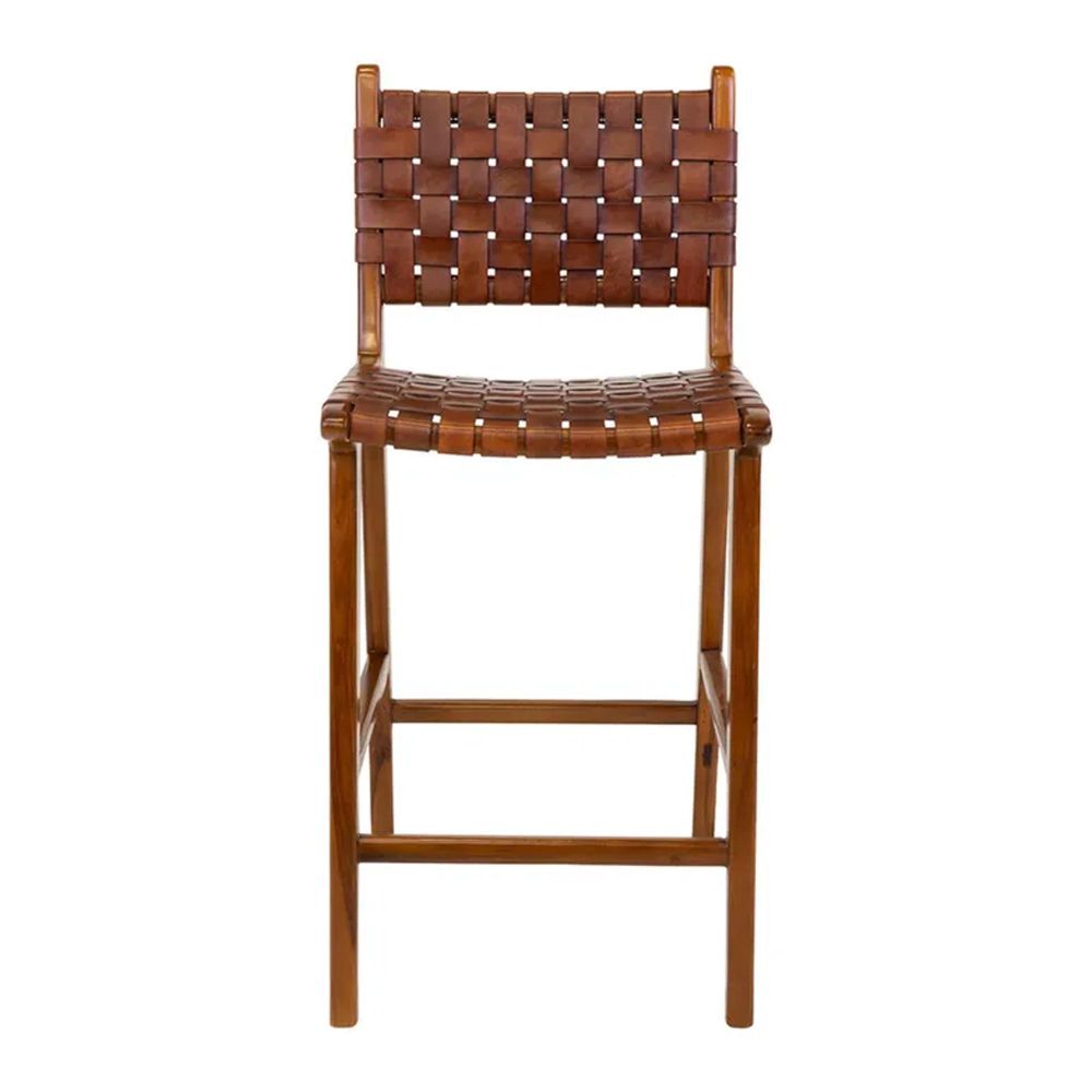 The Perugia Brown Leather Counter Chair brings together handcrafted detail, natural wood warmth, and a refined Scandinavian aesthetic. Designed for both comfort and visual appeal, this leather chair adds character to any room while offering dependable support for everyday use. The hand-woven, braided leather seat and back showcase true craftsmanship, while the teak frame provides a sturdy, timeless foundation. This wooden chair works seamlessly at a kitchen counter, breakfast bar, or stylish entertainment space. Its low-back profile creates an open, relaxed line that keeps the room feeling spacious, while still offering comfortable seating and functional design. Also available in a modern black leather finish for alternative styling options. Key Features: Braided leather strips on the seat and back for artisan detail Premium teak wood frame for durability and warmth Low-back design for a sleek and classic silhouette Available in brown and black leather Suits Scandinavian, rustic, and classic room settings Comfortable for both everyday seating and special occasions A refined leather chair built to age beautifully over time Delivery & Service: on all orders across the UK Scheduled time slot confirmation for convenience Transported using our own delivery vans Handled by experienced furniture couriers Choose the Perugia Brown Leather Counter Chair for its thoughtful design, lasting materials, and understated sophistication—an investment in quality seating that enriches your space with timeless style and reliable craftsmanship.