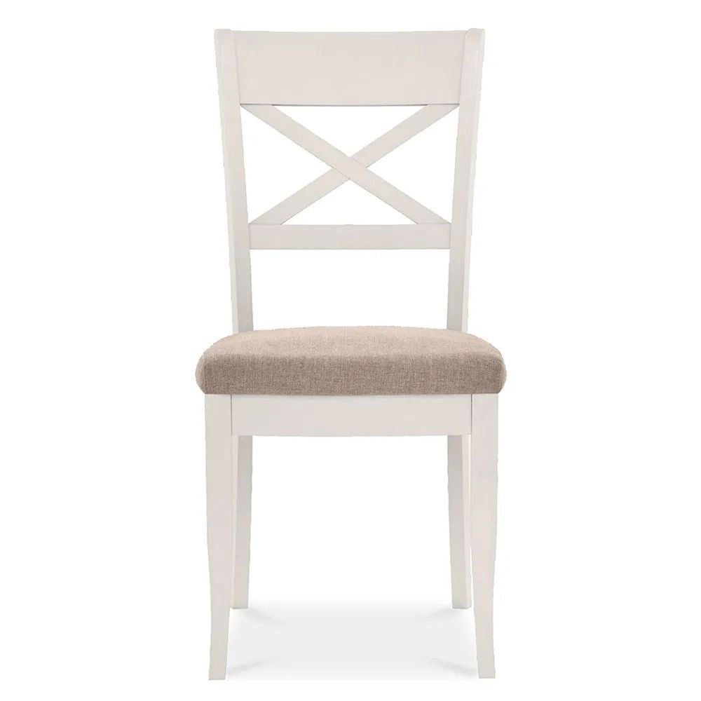 The Clearance - Montreux Dining Chairs - Set of 2 - X Back - Pebble Grey Fabric - Soft Grey - A297 - crafted from Fabric, Solid Beech with Wood legs, finished in Grey Washed, available in Grey. Free UK standard delivery included.