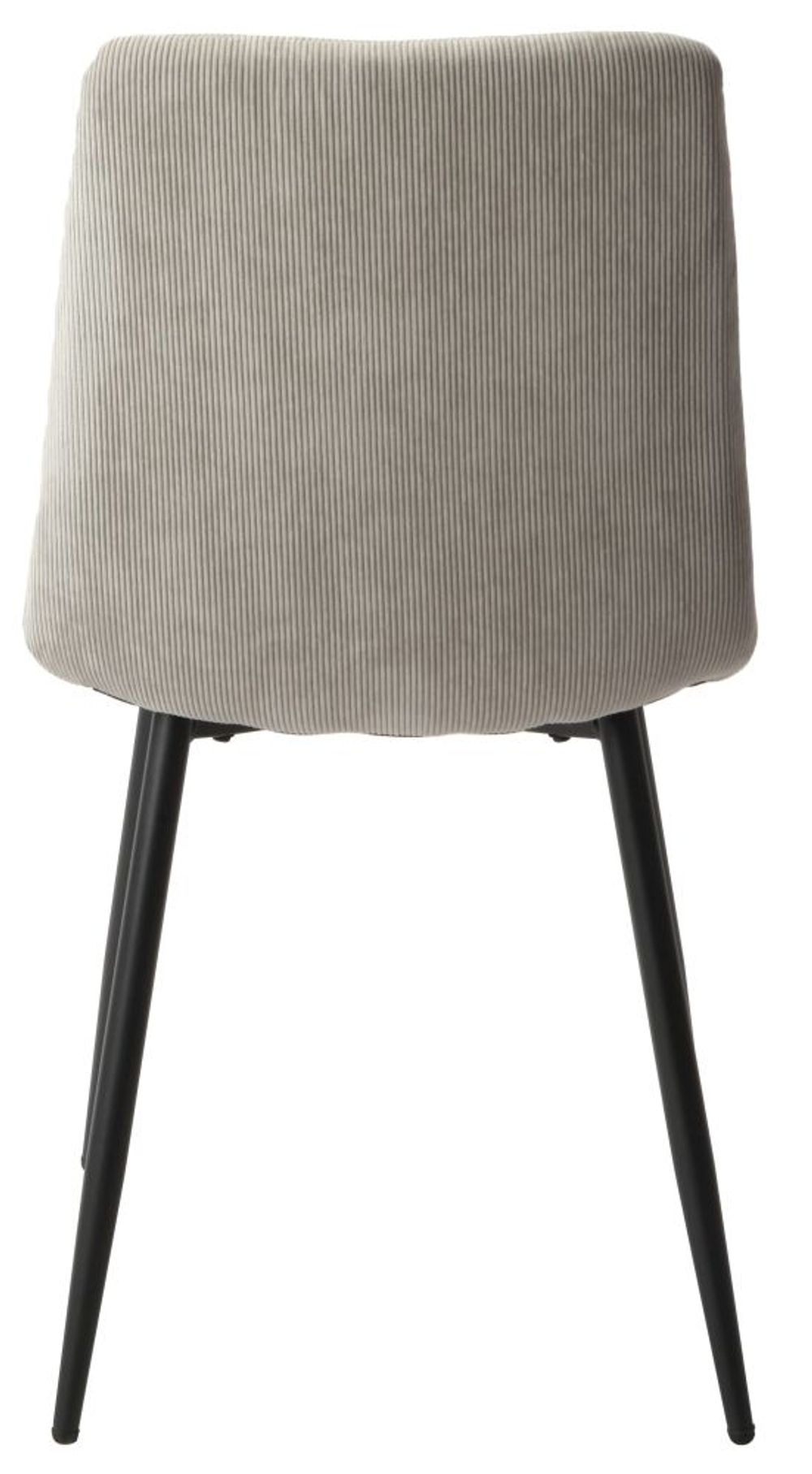 upholsteed seat with straight stitch design.plastic precision injection moulded internal seat.2 part steel underframe with tapered legs.This pair of compact dining chairs provide comfort and practicality. Designed for where space is at a premium, these chairs are upholstered in a light grey cord style fabric with padded straight stitched design. The interior features soft foam and a plastic injection moulded interior for your comfort. Black painted tapered metal legs complete the look.