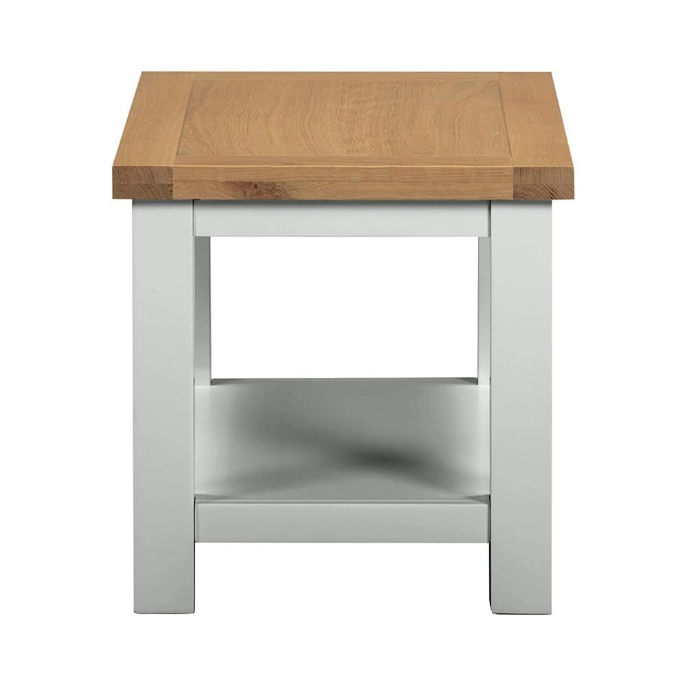 This small coffee table pairs a fresh painted base with a warm oak top, creating a relaxed modern country look. A lower shelf offers additional space for magazines or decor, making it both a stylish and practical centrepiece for your living room. Key Features: Crafted from White Oak, pine and MDF. Clean straight lines and stylish panels. Supplied with both our modern square metal knob for a contemporary look and a classic wooden knob for a traditional style. Which one you choose is up to you. Designed in the UK. Delivery & Returns: Free mainland UK delivery Time slot confirmation for added convenience Delivered using our own vans and specialist team