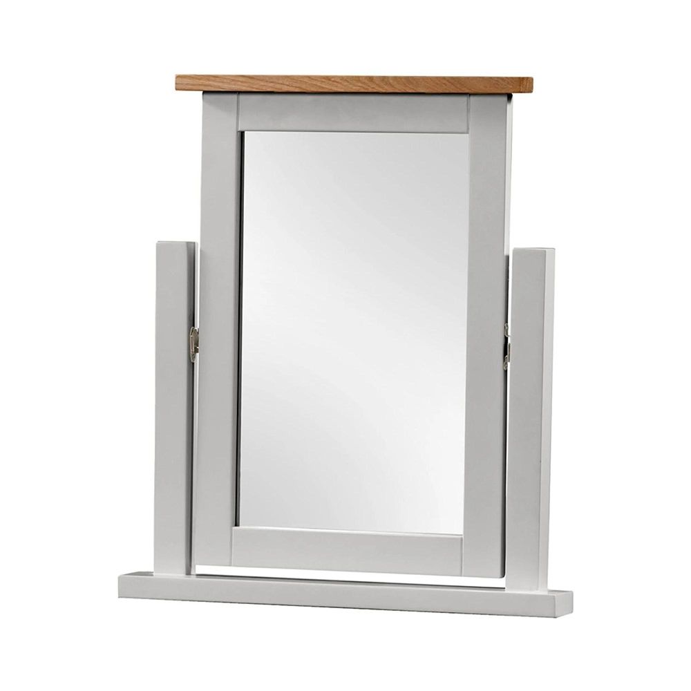 The Lundy Grey Painted Dressing Mirror combines timeless charm with practical elegance, making it the perfect finishing touch to your bedroom. Beautifully crafted with a painted frame and a light oak top, this mirror pairs seamlessly with the matching dressing table from the Lundy collection or can be styled as a standalone piece for a classic look. Designed with clean lines and a smooth painted body, it reflects the understated style of traditional craftsmanship while offering a modern, classy appeal. Whether you prefer the soft grey painted finish, a warm ivory, or a crisp white finish, this piece adapts beautifully to a variety of bedroom settings. Made with a sturdy mix of solid oak, MDF, and rubberwood, the mirror showcases the same attention to detail and high-quality build as the rest of the Lundy collection. Its simple yet sophisticated design makes it functional for daily use while adding elegance to your dressing space. Key Features: Elegant painted furniture design available in Grey, Ivory, or White finish Topped with a durable oak top for a warm, natural touch Crafted from a combination of solid oak, MDF, and rubberwood for long-lasting quality Clean, straight lines for a timeless and refined aesthetic Designed to complement the Lundy dressing table and stool, but versatile enough to suit other interiors Functional and stylish: perfect for everyday grooming and special occasions Delivery & Returns: on all orders across the UK Convenient time slot confirmation so you know exactly when to expect your order Delivered using our own vans for safe and reliable service Hassle-free returns for your peace of mind Bring craftsmanship, style, and practicality together with the Lundy Grey Painted Dressing Mirror. Whether paired with the matching furniture or used on its own, it offers both beauty and function for your home. Order today and add a timeless, refined touch to your dressing space.