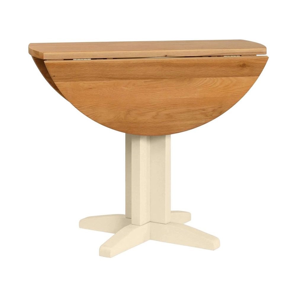 The Lundy Round Drop Leaf Dining Table - 2 Seater - 30cm-90cm - Ivory Painted - crafted from Oak, MDF and Rubberwood, finished in Ivory Painted, available in Cream, Modern style, Round shape. Free UK standard delivery included.