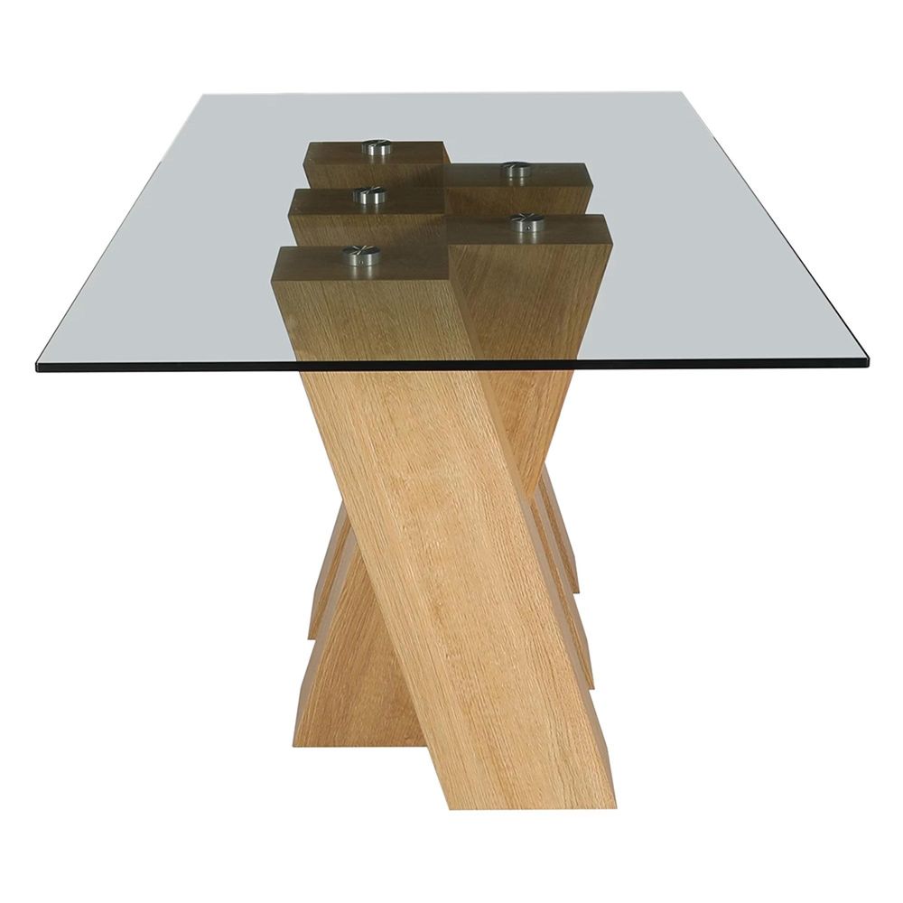 Newton Dining Table - 6 Seater - 180cm - Smoked Glass and Oak