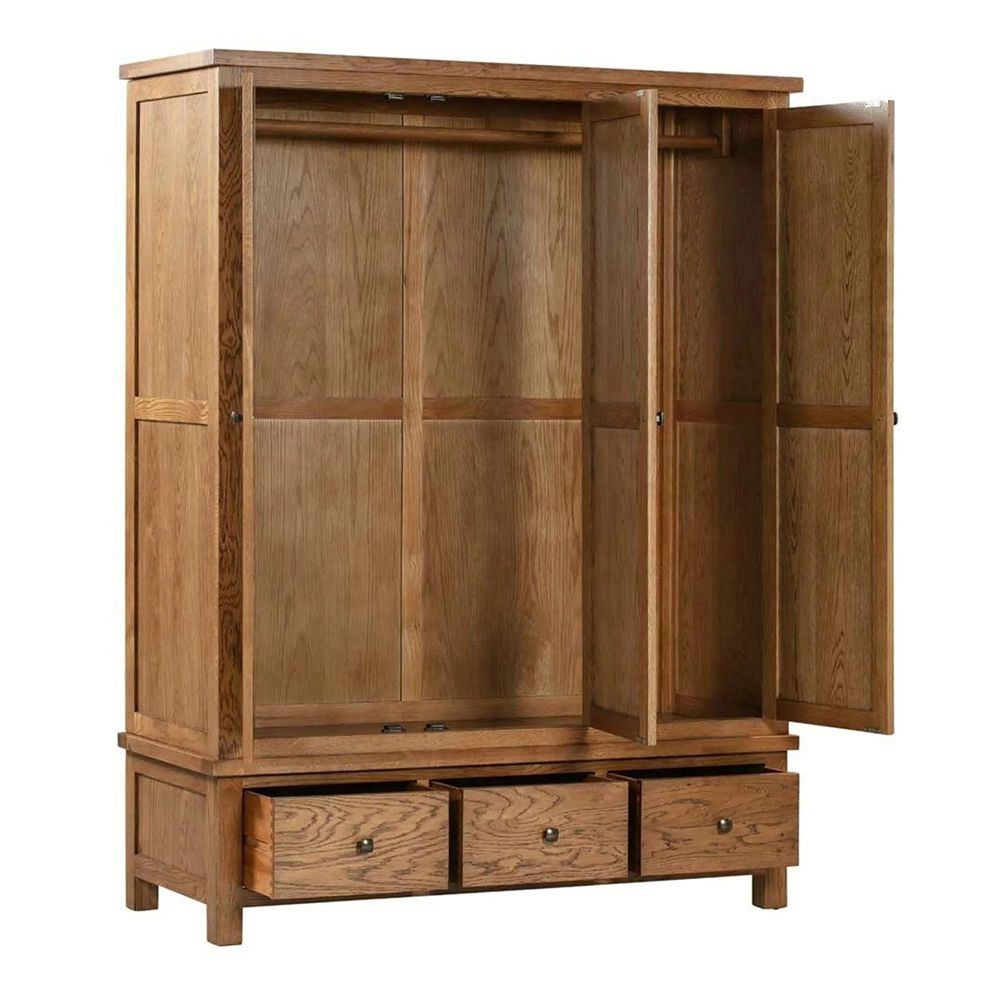 The Original Wardrobe - 3 Door - Rustic Oak - crafted from Oak, Pine, MDF, finished in Rustic Oak, Classic style. Free UK standard delivery included.