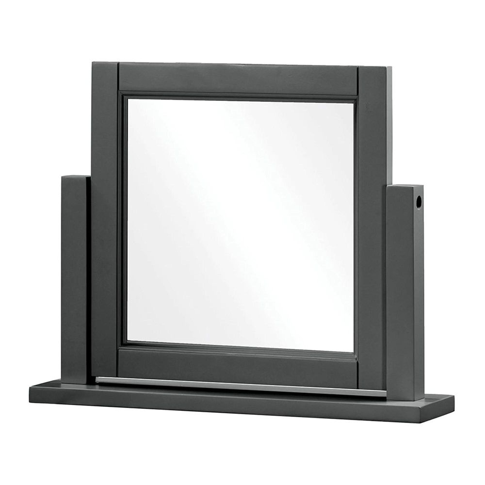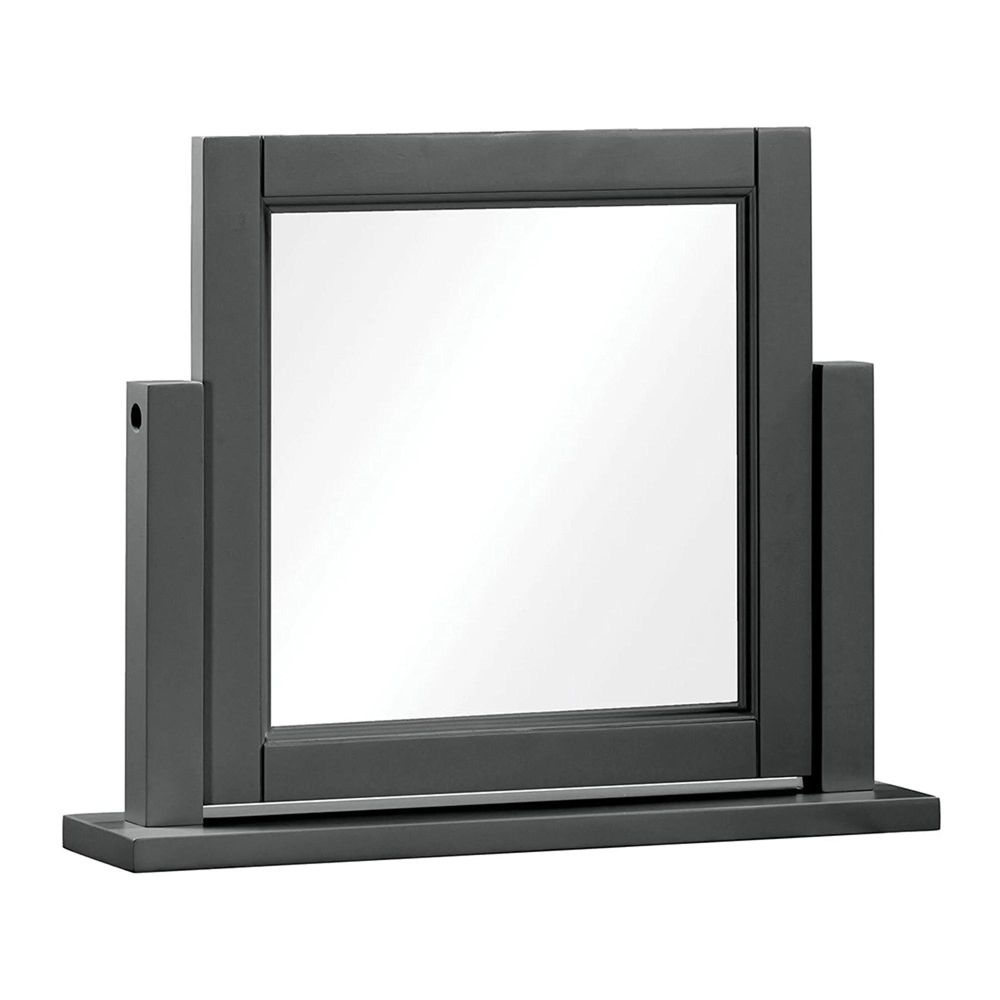The Wilmont Black Painted Dressing Mirror is a refined addition to any bedroom, designed to pair seamlessly with the wider Wilmont furniture collection. With its bold presence, modern edge, and matte finish, this mirror brings both style and practicality to your dressing area. Crafted from high-quality oak, oak veneer, and pine, the frame is finished in a deep black paint that highlights its stylish, statement appeal. The softened corners and clean lines echo the same design language as the range’s beds, chests, wardrobes, and dressing tables, allowing you to create a harmonious look throughout your room. Pale oak accents add a touch of contrast, ensuring the mirror complements both darker tones and lighter décor schemes. Whether placed on a Wilmont dressing table or used as a standalone feature, this mirror is as functional as it is stylish, helping you prepare for everyday moments and special occasions with ease. It is also available in a moon grey finish if you prefer a softer, neutral palette. Key Features: Crafted from oak, oak veneer, and pine for strength and durability Black painted finish with pale oak detailing for a bold yet refined look Matte finish for a modern, understated appeal Designed with softened edges to reflect the Wilmont collection’s cohesive style Complements other painted furniture in the Wilmont range, including wardrobes, dressing tables, and chests Available in an alternative moon grey finish Delivery & Returns: on all orders across the UK Delivery arranged using our own vans for careful handling Time slot confirmation, so you know exactly when to expect your item Bring home the Wilmont Black Painted Dressing Mirror and enjoy the perfect balance of style, craftsmanship, and practicality. Pair it with the matching dressing table and stool for a complete set that transforms your bedroom into a space of elegance and function. Order today and make this statement piece part of your home.