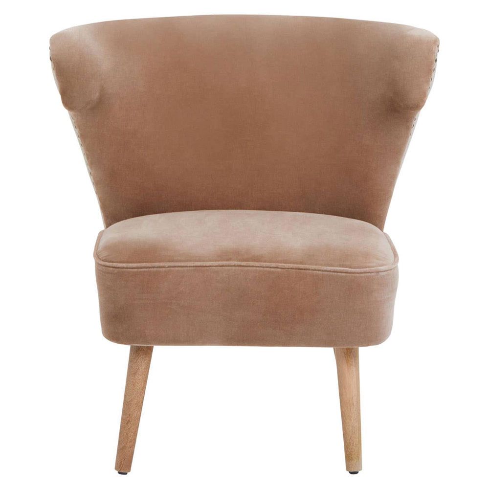 The Cefena Chair - Mink Velvet Fabric - crafted from Cotton, Foam and Mango Wood with Wood legs, finished in Brown, available in Brown, Scandinavian style. Free UK standard delivery included.