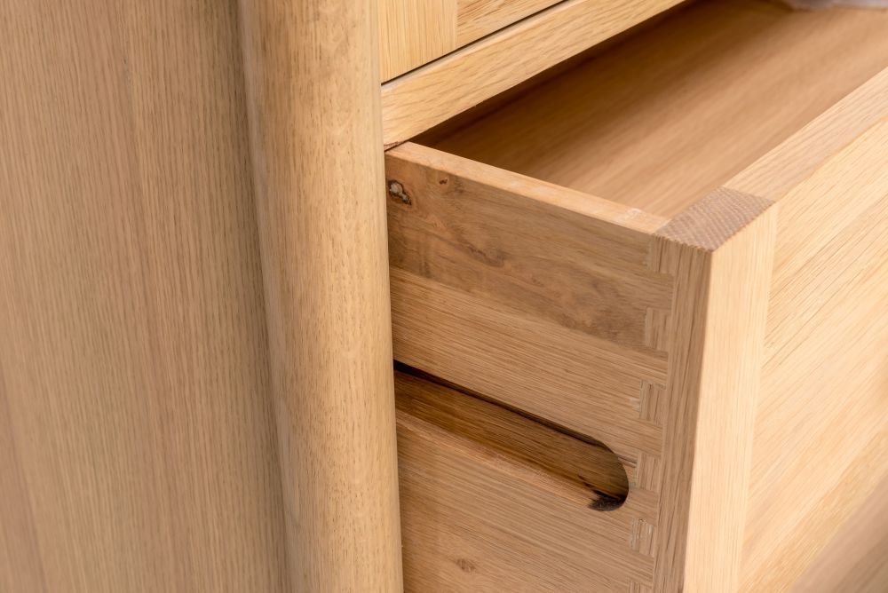The Grace Range takes us back in time to the ground breaking designs of the 1960's. Made from Oak and finished in two neutral shades, Oak and Walnut, this range recalls long forgotten home comforts with its nostalgic design. This range can be styled to truly reflect that Summer of Love or stand alone as a powerful statement in a more modern space. Solid Oak and Oak Veneers construction ensures lasting durability and natural character Natural Matte Lacquer and Walnut Colour Tops finish that enhances the natural wood grain and protects against everyday wear Delivered fully assembled – ready to use straight away, no tools required Full-extension drawer runners allow complete access to every corner Smooth-running, soft-close mechanism for quiet everyday use Coordinates with the full bedroom range for a seamlessly styled interior
