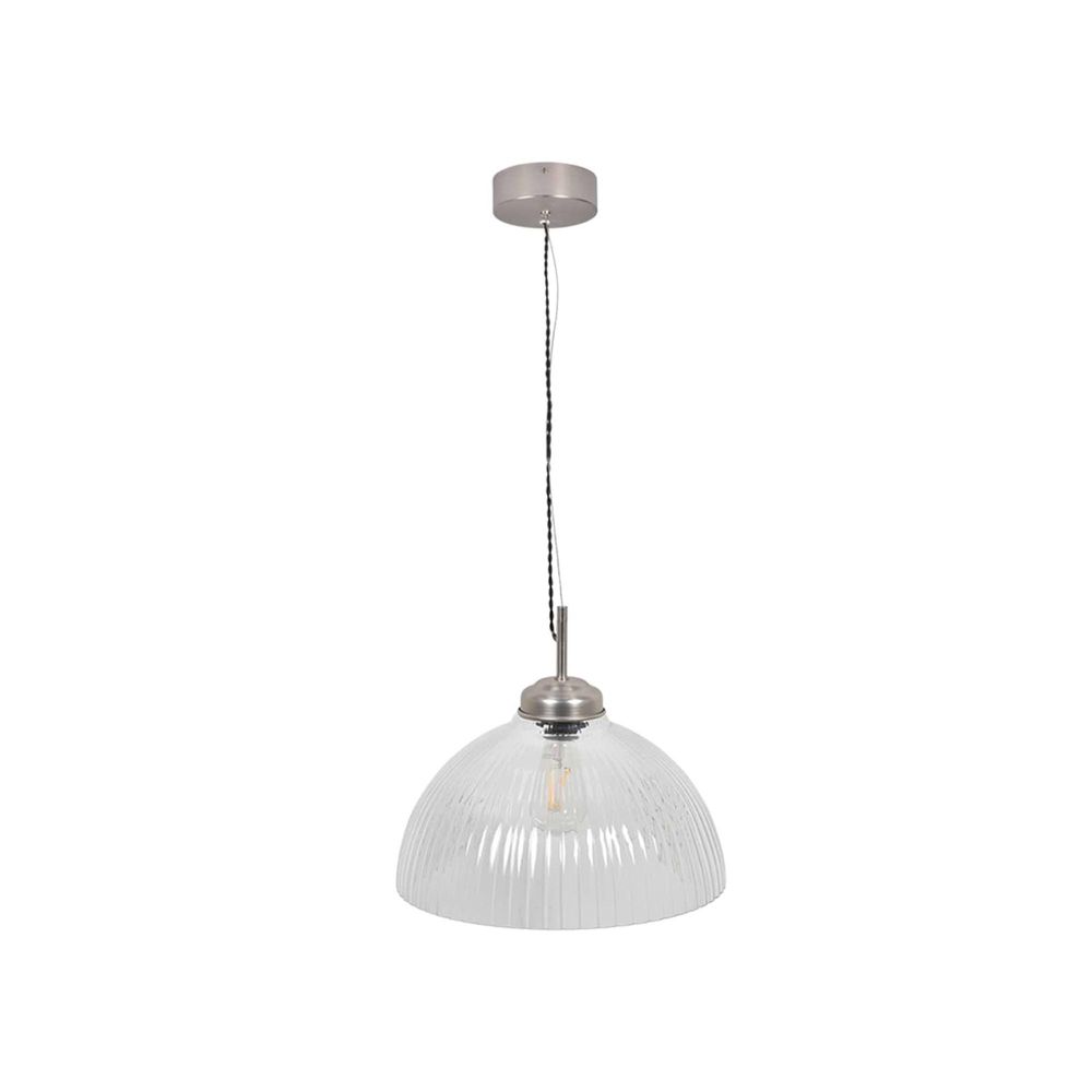 With its retro vibe and chic ribbed detailing, our Fovant Glass Pendant Light wouldn't??t look out of place in a Parisian brasserie. With a stunning 38cm dome-shaped shade, this statement ceiling light will cast an impressive orb of light over a large dining table or kitchen island, as well as making a striking first impression in a hallway. Its crafted from hand-blown glass with satin nickel coated steel fixings.IP20 Class I Recommended bulb type: x1 E27 LED Max 10W (not included) Shade height: 30cm Shade diameter: 36cm Cable length: 180cm Material: Aluminium, glass, steel. Cord is adjustable in length, we recommend you use a qualified electrician to do this.