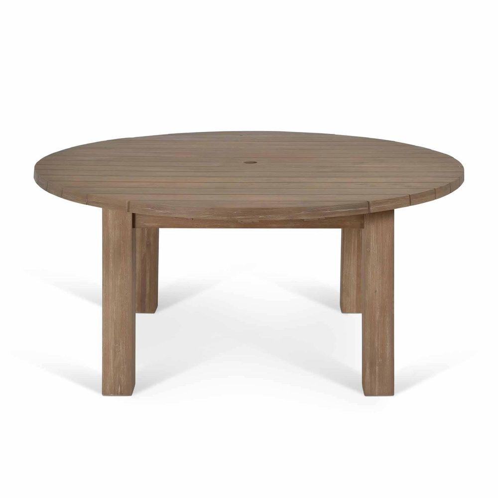 The Porthallow Outdoor Round Dining Table Medium Natural Acacia Wood - crafted from Acacia Wood, finished in Natural, available in Brown, Scandinavian style, Round shape. Free UK standard delivery included.