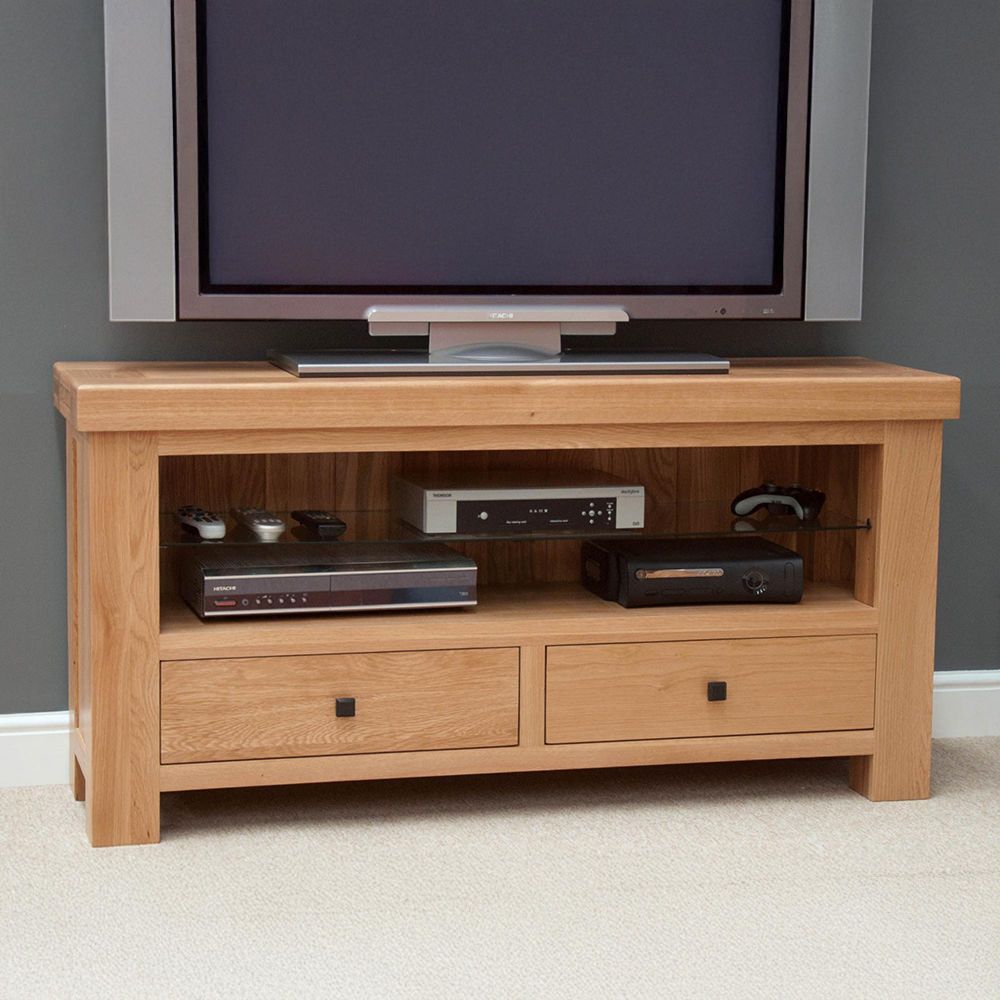 The Bordeaux TV Unit - 2 Drawer - Oak - crafted from American White Oak, finished in Lacquered, available in Brown, Traditional style. Free UK standard delivery included.