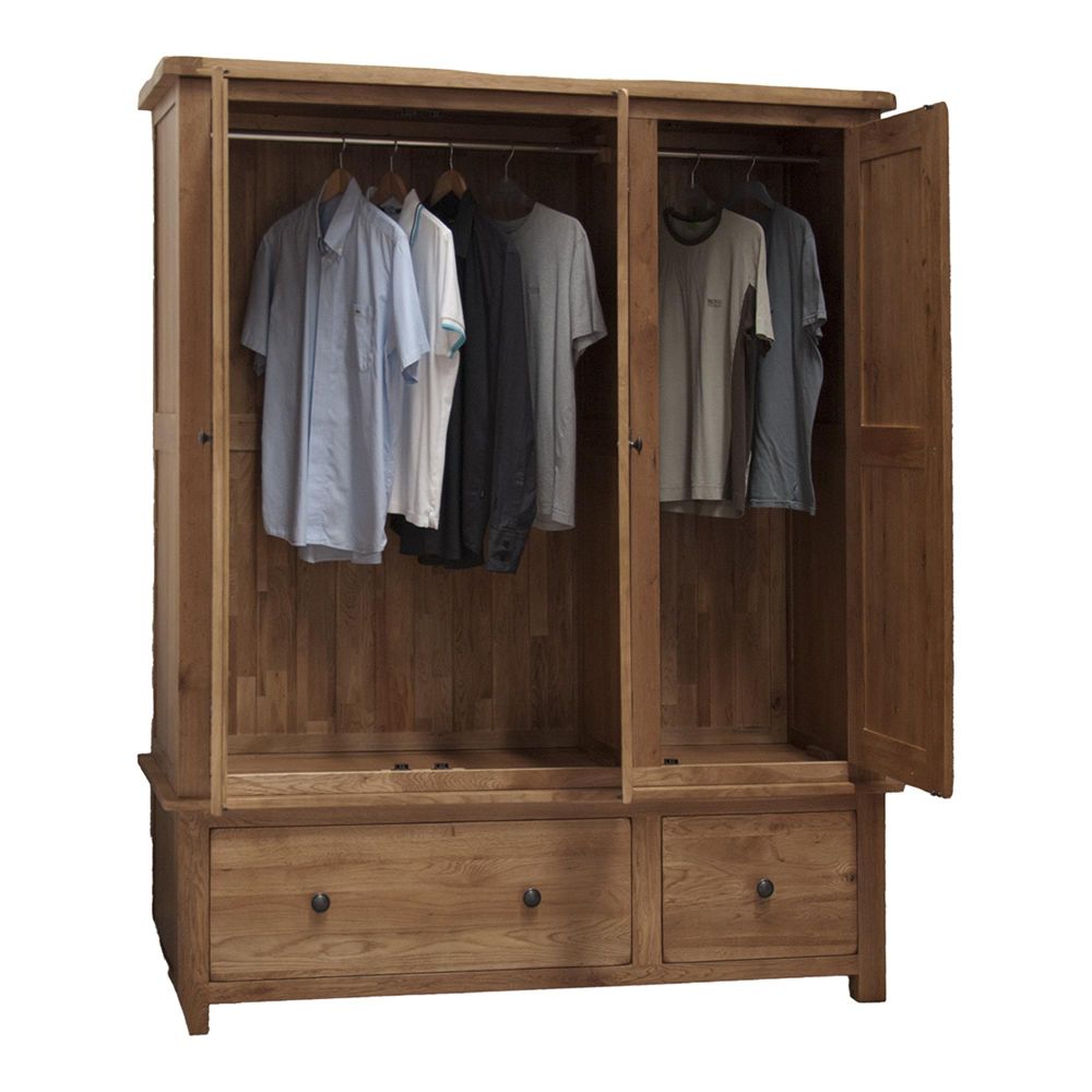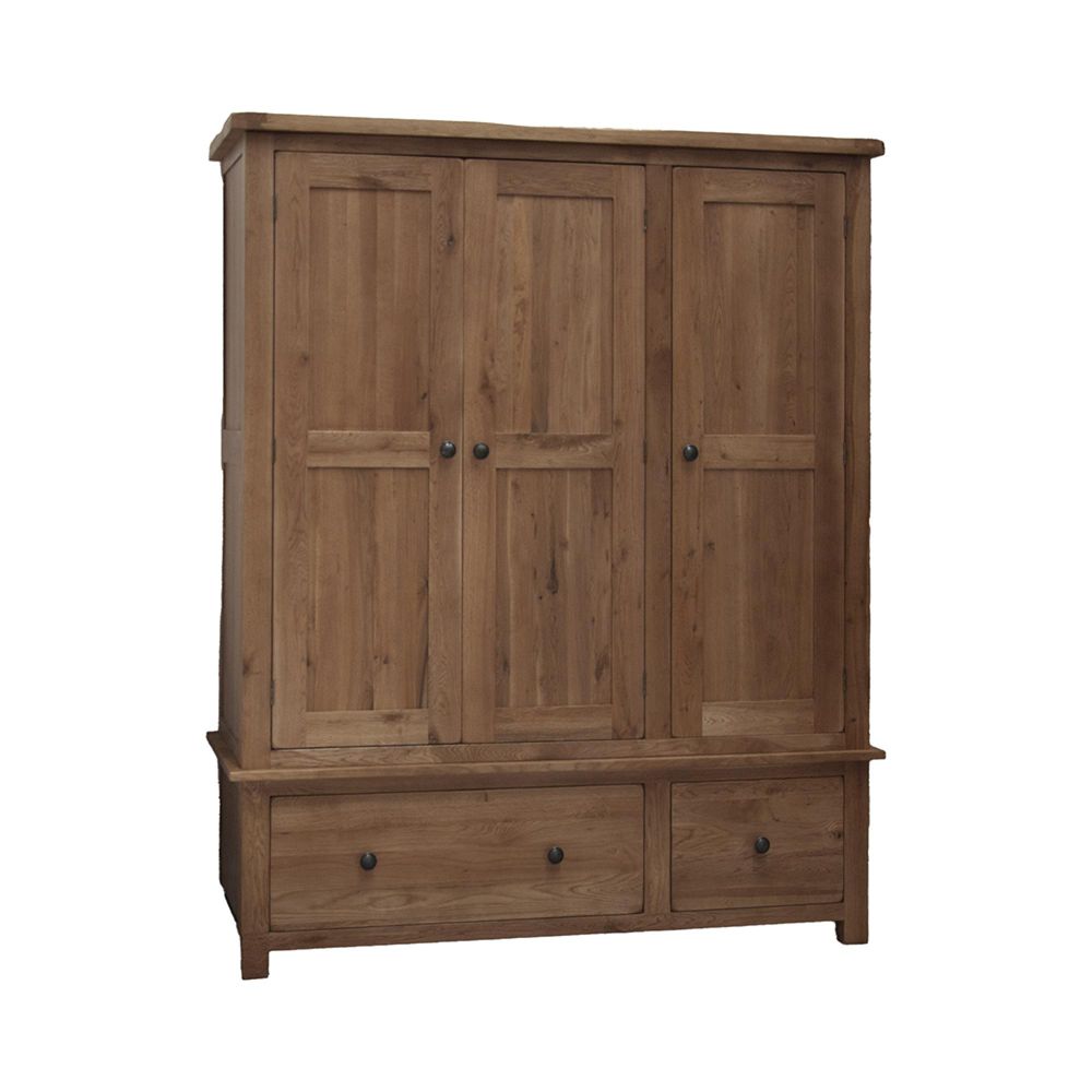 The Rustic Oak Wardrobe - 3 Door - 2 Drawer - Oak - crafted from European Oak, finished in Lacquered, Rustic style. Free UK standard delivery included.