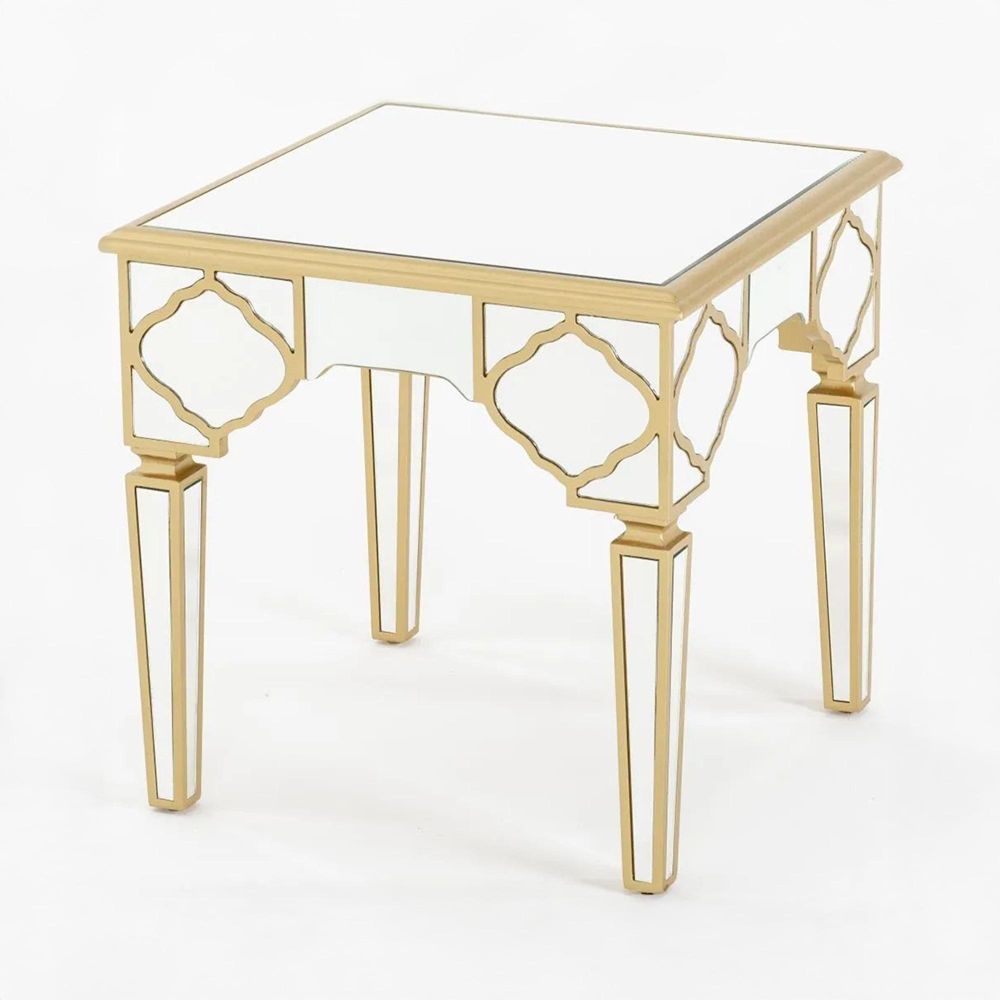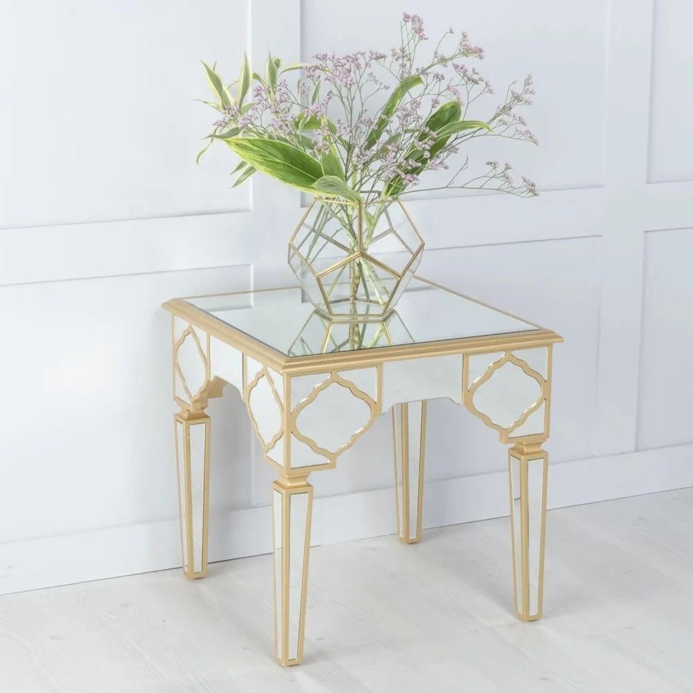 The Casablanca Side Table - Square - Mirrored - Gold Trim - crafted from MDF and Mirrored, finished in Gold Mirrored, available in Yellow, Glam style, Square shape. Free UK standard delivery included.