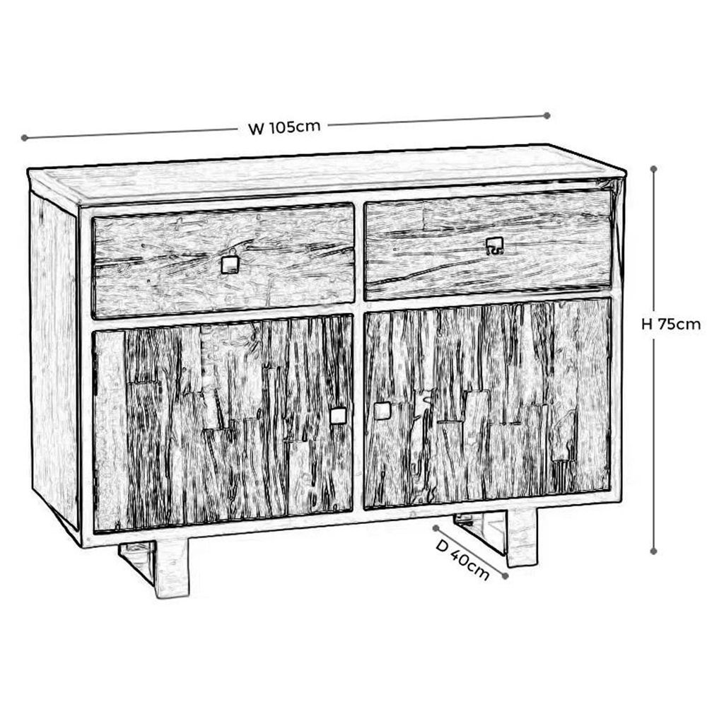 Bringing a together with Railway Reclaimed wood and glass, the 2 Door 2 drawer is created from a creative and unique medium which is Railway Reclaimed wood. Each table top is made from unique recycled solid wood in an Antique finish and is protected by a 10mm toughened glass top. The beautiful wood grains make every piece of furniture unique and slightly different from the next. The legs are made of durable stainless steel chrome which adds to the table's sturdiness and stability, as well as its industrial style.