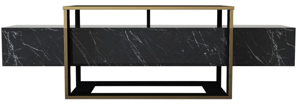 The Clearance - Weldona TV Unit - Black Marble Effect - crafted from Particle Board, finished in Black Marble Effect and Gold, available in Black, Contemporary style. Free UK standard delivery included.