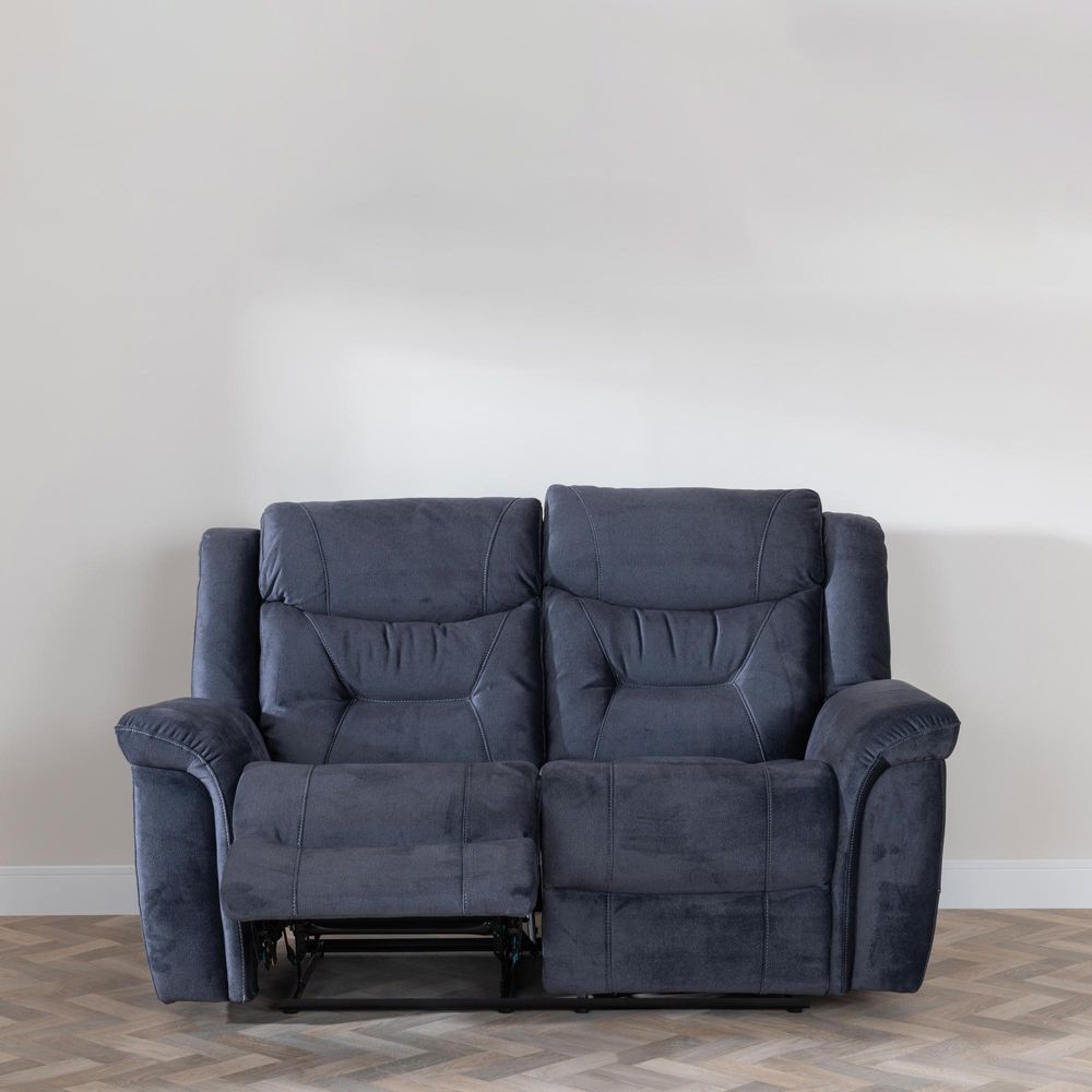 The Dudley Silvano Recliner Sofa - 2 Seater - Blue Fabric - crafted from Fabric with Metal legs, finished in Blue, available in Blue, Contemporary style. Free UK standard delivery included.