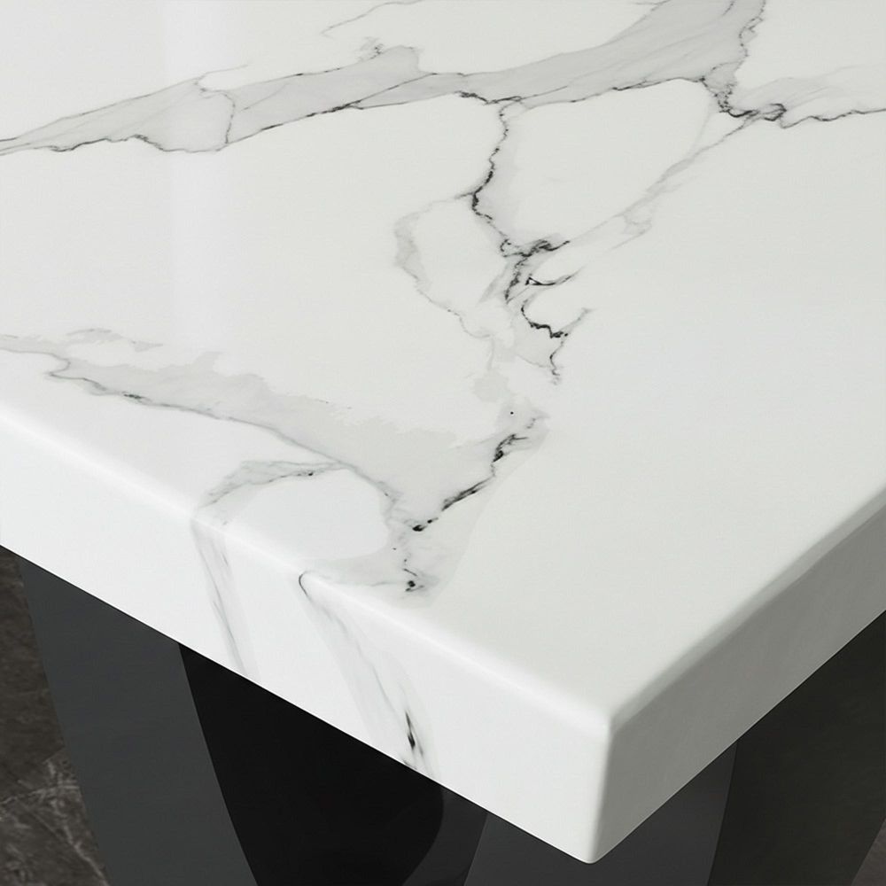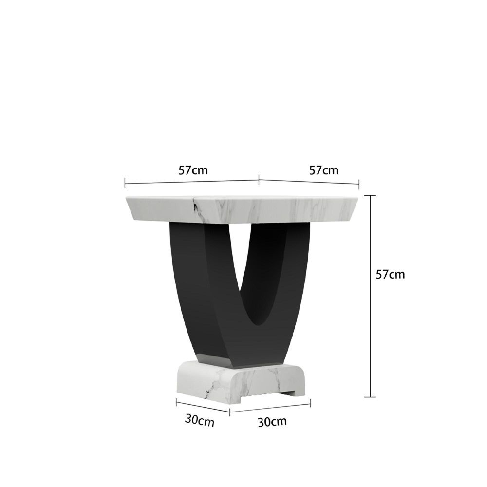 The Madrid Side Table - White Marble - crafted from Engineered Marble with Marble legs, finished in White and Black High Gloss, available in White and Black, Contemporary style, Square shape. Free UK standard delivery included.