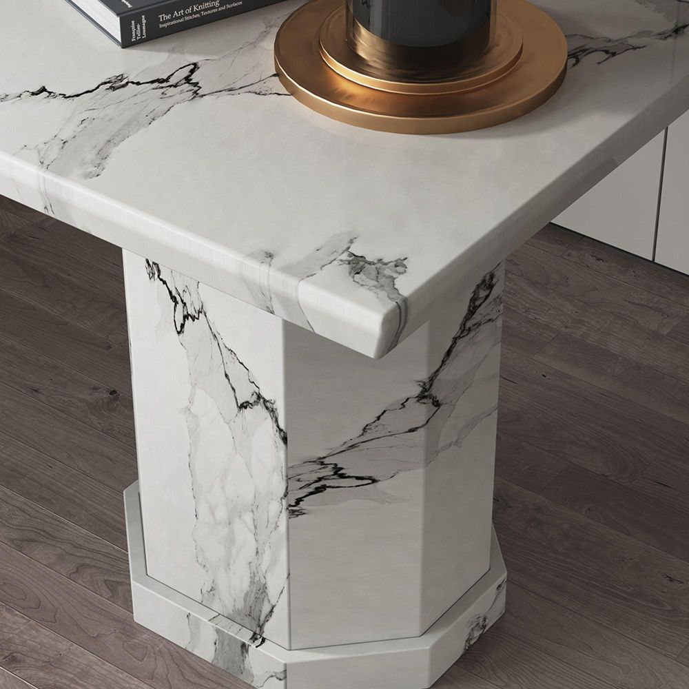 Complete your interior ensemble with the Naples White Marble Square Side Table, a beautifully designed accent piece that brings quiet elegance to any corner of your home. Crafted entirely from white marble, its square top and pedestal base echo the sophisticated design language of the Naples Range. Whether placed next to a sofa, an armchair, or used as a standalone décor piece, this table exudes refinement and functionality in equal measure. Please note: This item does not qualify for white glove delivery. Key Features: Compact square marble top with chamfered edge. Crafted from solid white marble for lasting quality. Glossy finish highlights the stone's natural beauty. Matches perfectly with other pieces in the Naples Range. Versatile and elegant—ideal for living rooms, bedrooms, or hallways. Delivered with care using our own transport service. Complete your living room with the Naples Side Table, a compact design icon that delivers elegance in every detail—perfect for modern lifestyles.