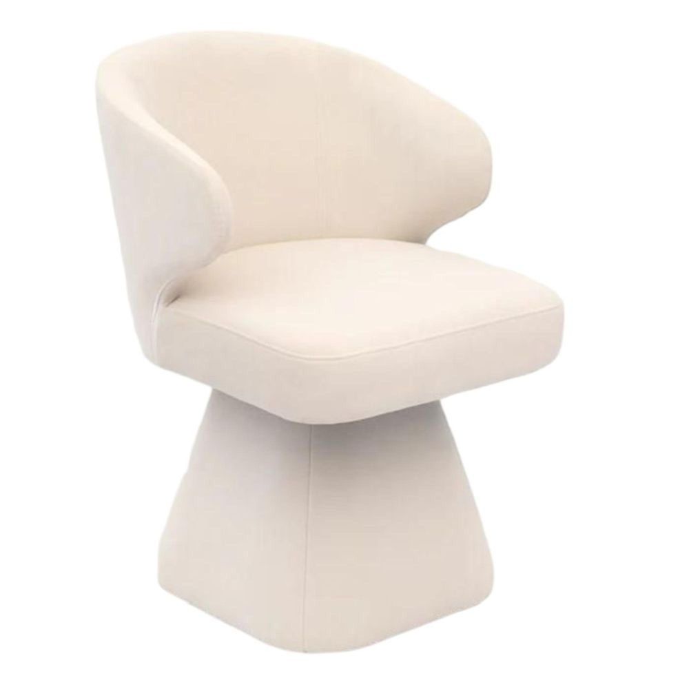 Riya Dining Chair - Sculpted Barrel - Swivel - White Fabric