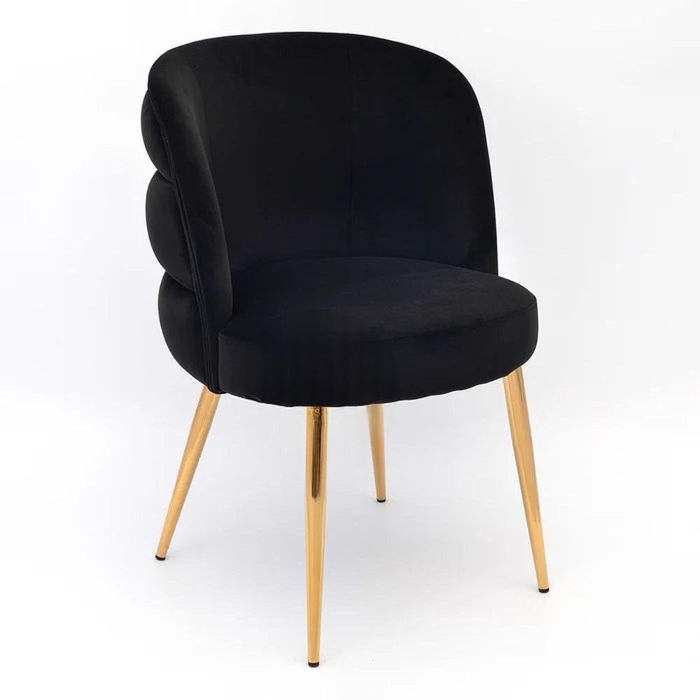 The Sloane Black Velvet Fabric Dining Chair with Gold Legs brings a refined presence to any modern dining room. Designed with a focus on comfort, craftsmanship, and timeless style, this velvet dining chair offers a luxurious seating experience suitable for both everyday dining and formal occasions. Its sculpted shell-shaped back wraps around the body to provide supportive seating, while the soft velvet upholstery adds a smooth, sophisticated finish. The channeled stitching enhances the chair’s contour, giving it a stylish, tailored look that pairs effortlessly with contemporary interiors. Tapered gold-finished metal legs complete the design with a polished touch, creating a striking contrast against the black velvet. This chair is also available in white and wine red, allowing you to coordinate your dining room with ease. This chair is crafted for lasting comfort, making it an excellent choice for long meals, gatherings, or daily use. Its supportive form, quality upholstery, and modern detailing ensure it serves as both a practical and visually appealing addition to your home. Key Features: Premium velvet dining chair with a supportive wrap-around shell-shaped back Channelled stitching for a refined, structured appearance Tapered gold-finished metal legs for a modern look Comfortable seat designed for daily use and long meals Available in three velvet upholstery options: black, white, and wine red Delivery & Returns: on all orders Delivery scheduled with a confirmed time slot Items transported using our own specialist vans for safe handling Hassle-free returns process Choose the Sloane Black Velvet Fabric Dining Chair with Gold Legs to bring craftsmanship, comfort, and stylish design into your dining room. This piece offers the perfect balance of function and beauty, making it a standout choice for any modern home.