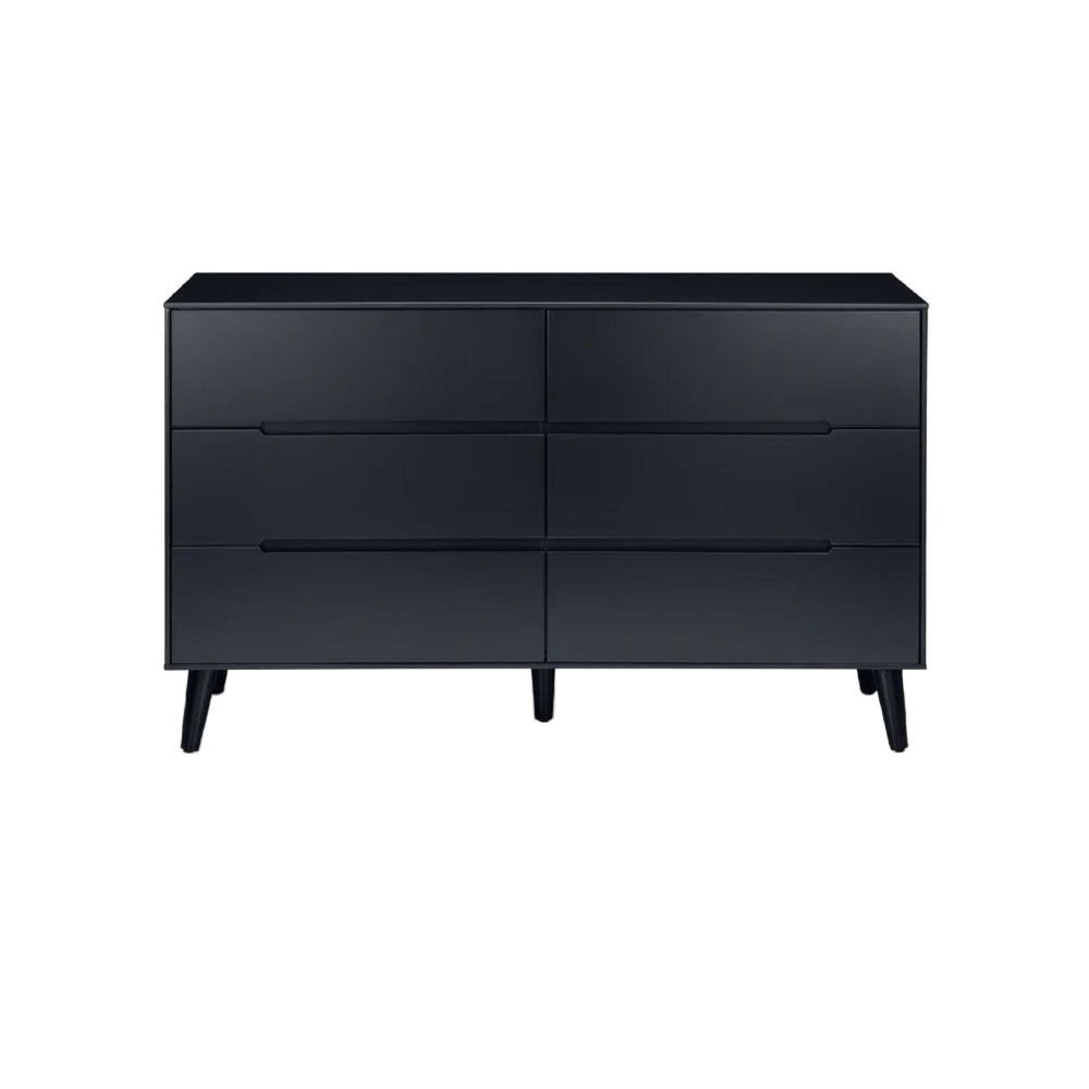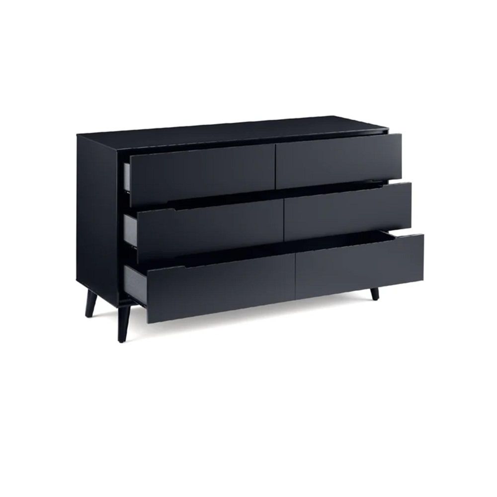 The Alicia Black Wide Chest - 6 Drawer - crafted from Lacquered MDF, finished in Black, available in Black, Scandinavian style. Free UK standard delivery included.