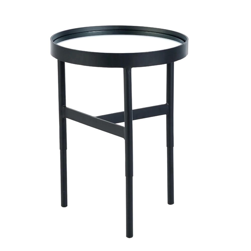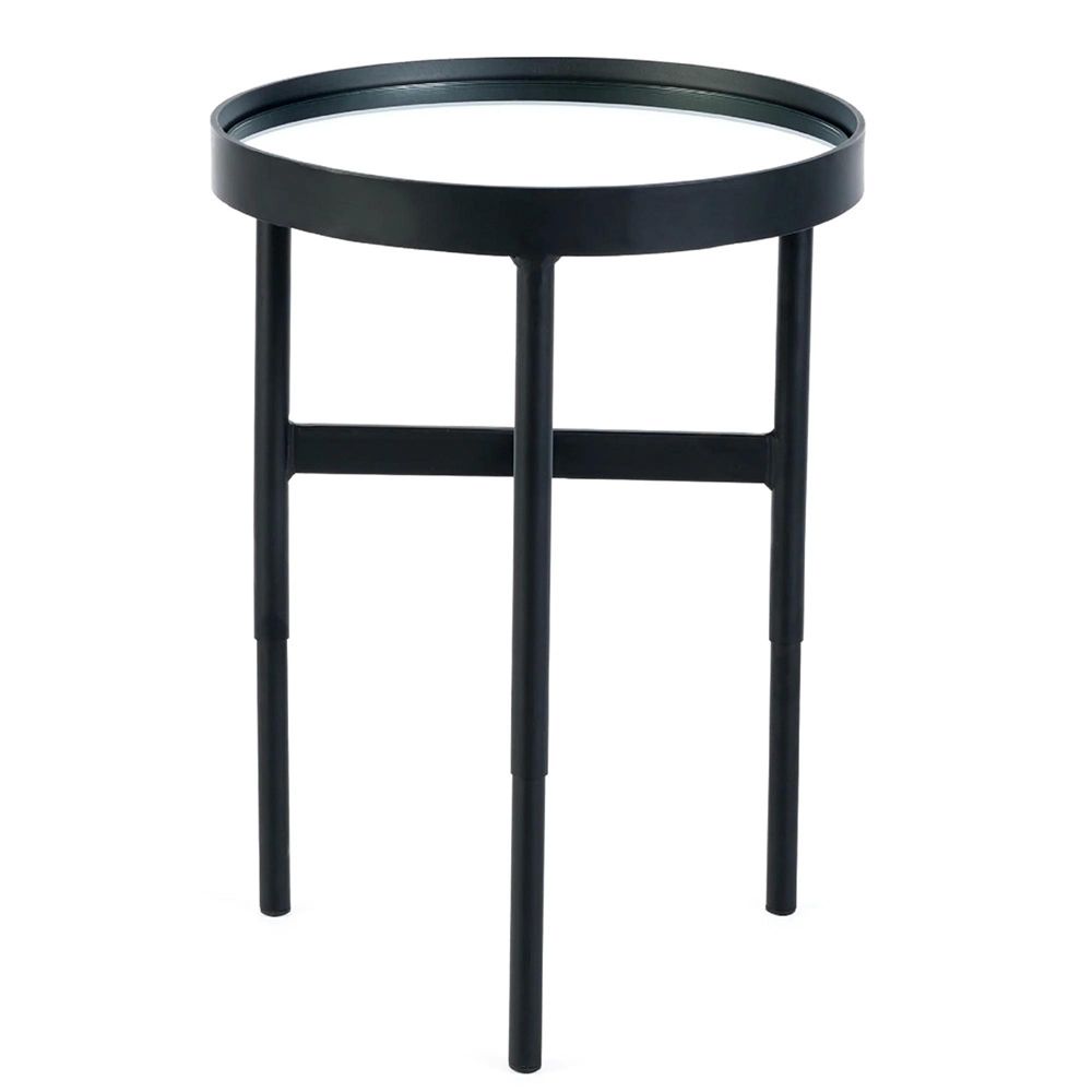The Franki Lamp Table - Round - Black Metal - crafted from Mirrored Glass and Powder Coated Steel, finished in Black and Mirrored, available in Black, Industrial style, Round shape. Free UK standard delivery included.