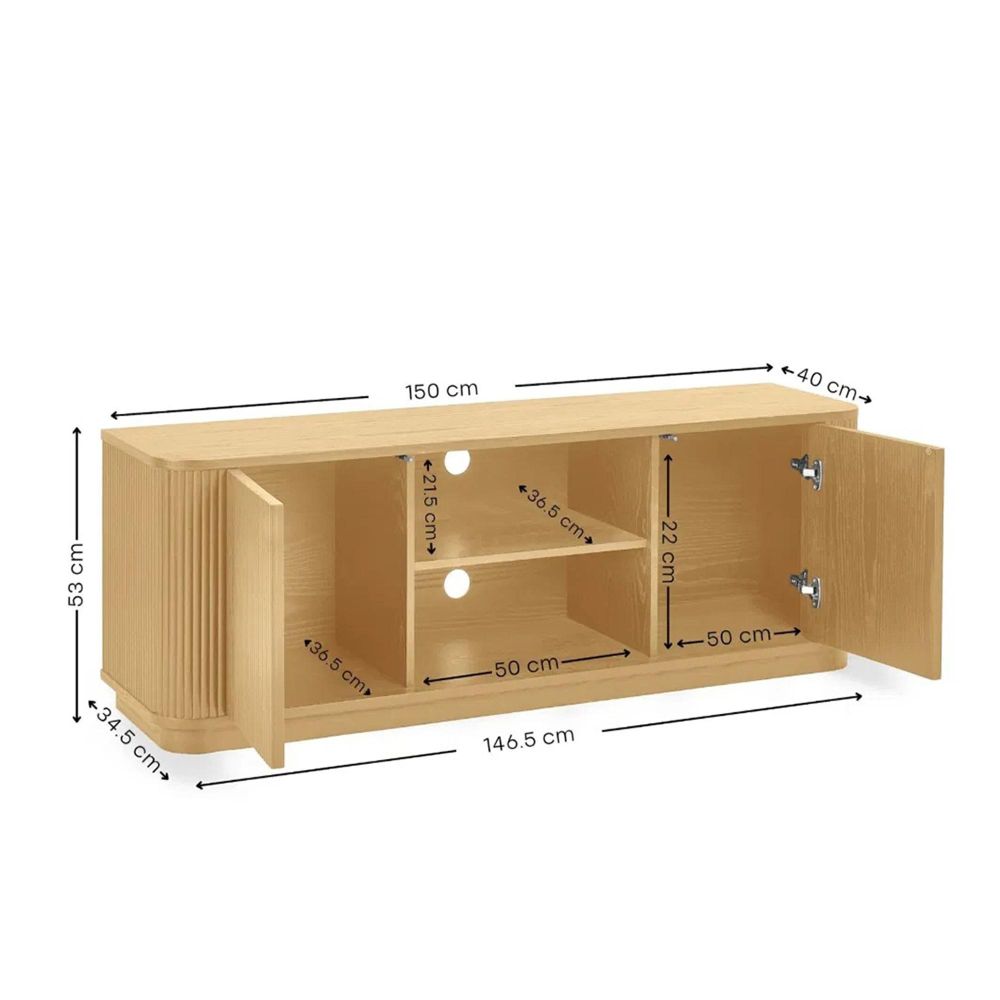 Louis TV Unit - 2 Door - Light Oak Effect - Fluted Base