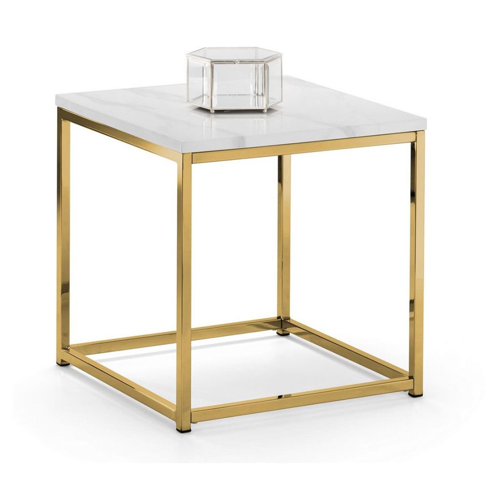 The Scala Lamp Table - Square - White Marble Effect and Gold - crafted from MDF and Metal, finished in White and Gold, available in White, Glam style, Square shape. Free UK standard delivery included.