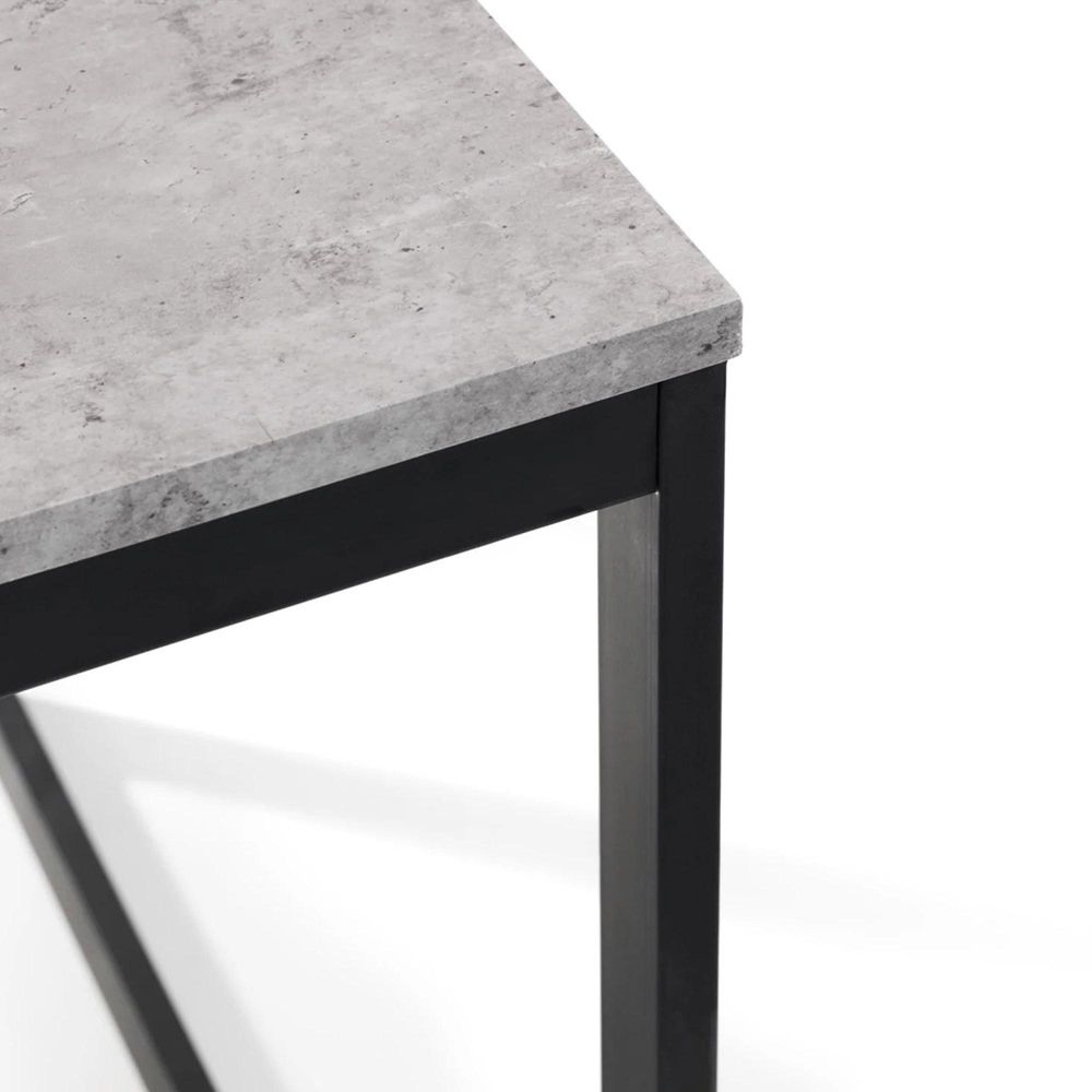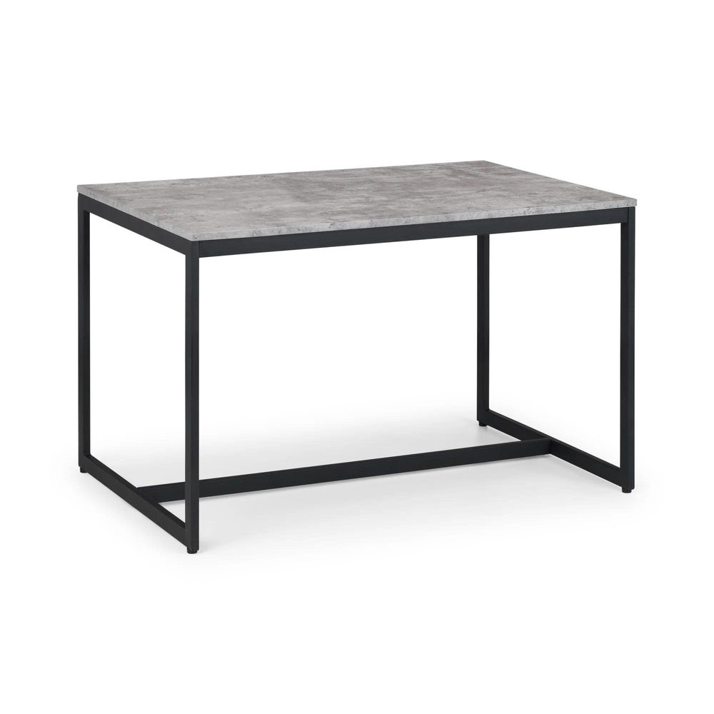 Simplistic in design with a contemporary style, the Staten Dining Table will add a stunning industrial look to any living and dining area. Constructed from a black coated metal frame, complemented by a striking concrete effect tops, to create a very stylish, modern product. Part of the Julian Bowen Staten Dining and Occasional Collection.Black coated metal frame and concrete effect foil.Strong and durable construction.Modern design suitable for a range of decor.Part of the Julian Bowen Staten dining and Occasional range.12 month product guarantee