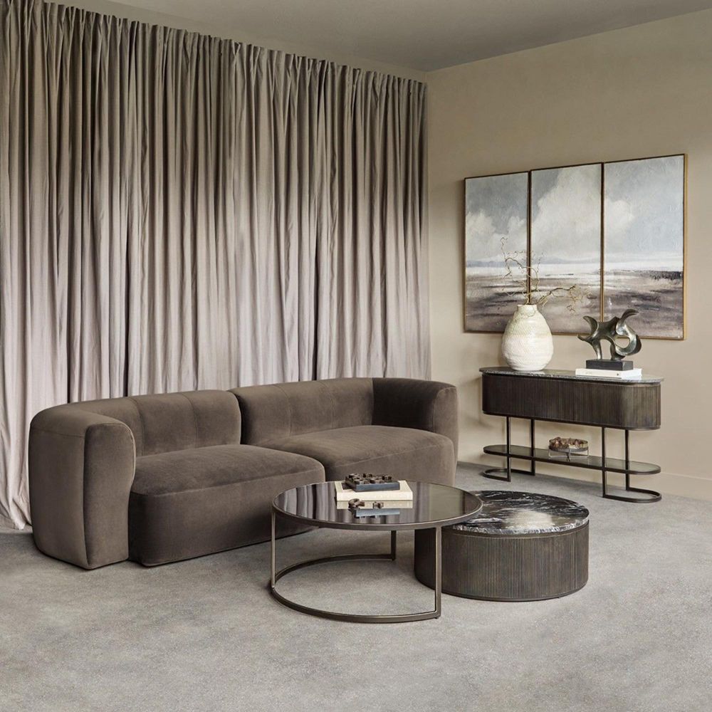 The Wicklow 2-Seater Sofa creates a bold yet refined presence, combining smooth sculptural curves with plush, inviting comfort. The sofa is made of two sections and is upholstered in a rich brown velvet, adding warmth and depth to any space. The generous proportions and gently rounded form make it a distinctive piece of upholstery, while the deep seats are designed for ultimate relaxation. Full dimensions 275 x 104 x 73 cm. Discover the full range including our Wicklow Modular Sofa and Ottoman. Each section measures 107 cm wide, with a seat height of 44 cm, seat depth of 59 cm, backrest height of 29 cm.Delivery & Service Highlights: across England and WalesPre-confirmed delivery slots for added convenienceHandled by our professional delivery teamHassle-free returns for complete peace of mind