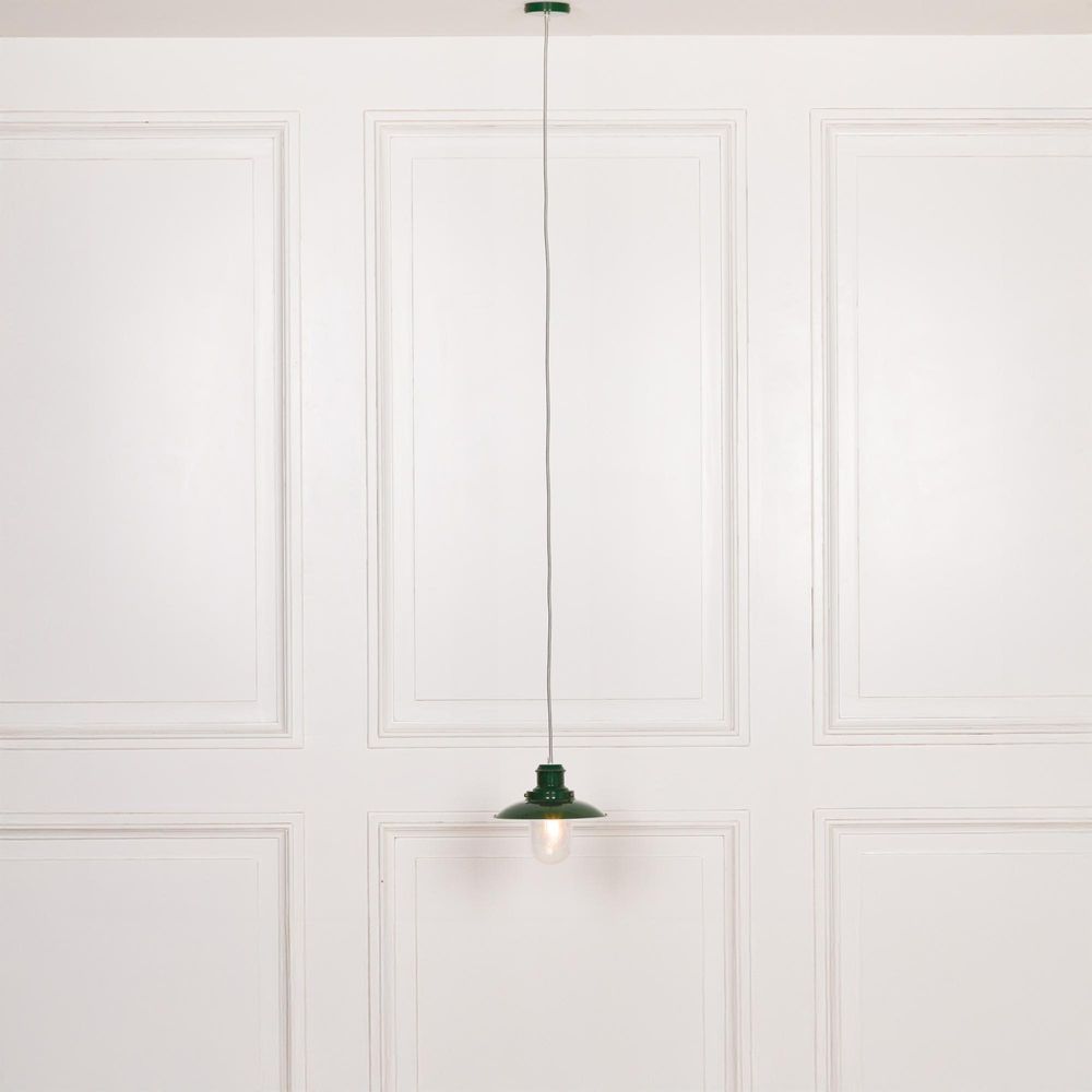 The Fishermans Ceiling Light - British Green Painted Metal - crafted from Metal, Glass and Braided Cord, finished in British Green, Industrial style. Free UK standard delivery included.
