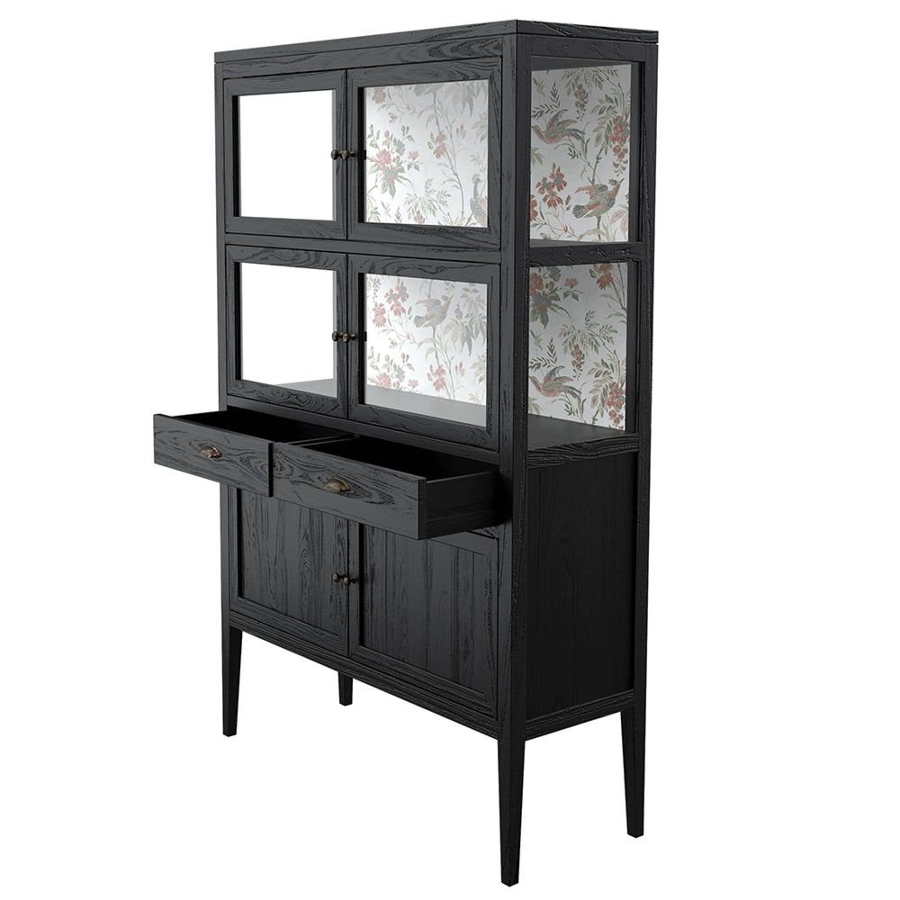 The Elsie Display Cabinet - 6 Door 2 Drawers - Black - crafted from Solid Elm, Oak Veneer and Glass, finished in Black, Modern style. Free UK standard delivery included.