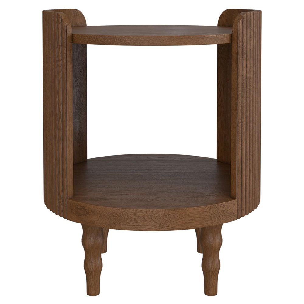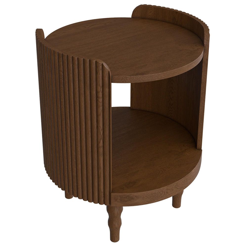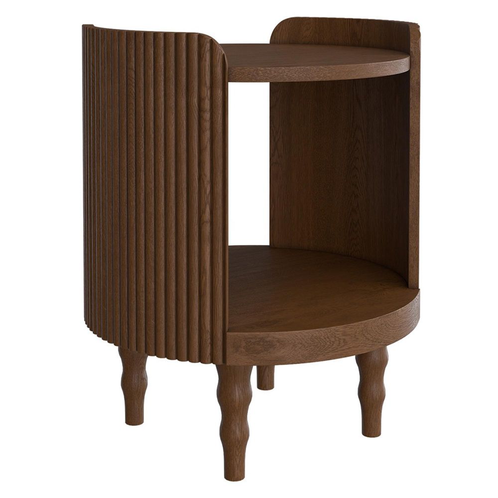 The Wynter Side Table offers a sophisticated and unique design coupled with a beautiful finish. This luxurious occasional piece is made from Elm solids and veneers and features bobbin-style turned legs, two useful shelves and eye-catching Art-Deco style ribbed end panels. The delightfully figured timber is accentuated with a warm teak-effect stain and a protective satin lacquer, ensuring that your investment will a talking point for years to come. Only the legs need to be attached to begin enjoying this piece; full assembly is not required.