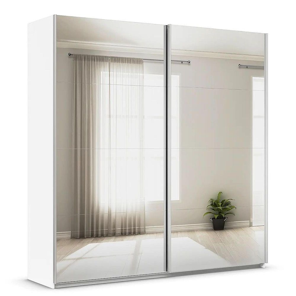 The Quadra Sliding Wardrobe - 226cm - 2 Door - Mirrored - with Extras - Alpine White - crafted from MDF, finished in Alpine White, Modern style. Free UK standard delivery included.