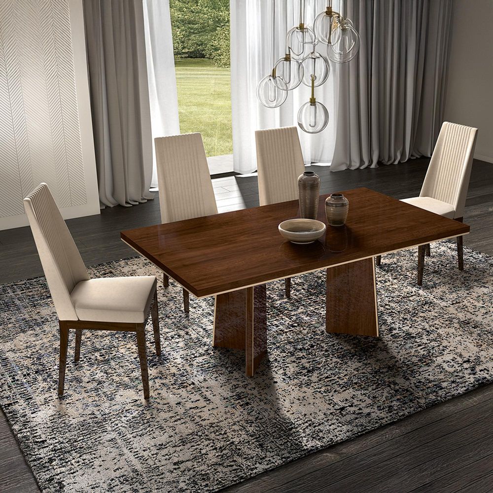 The Modern Eva Dining Chair - Set of 2 - Beige Fabric - crafted from Fabric, finished in Tobacco Walnut, available in Beige, Modern style. Free UK standard delivery included.