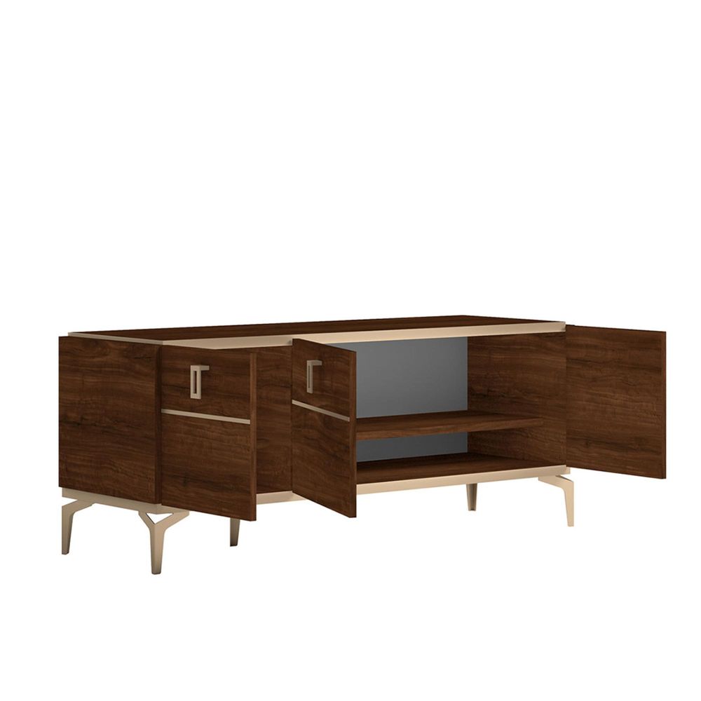 Modern Eva TV Unit - 140cm - Walnut with Gold Trim