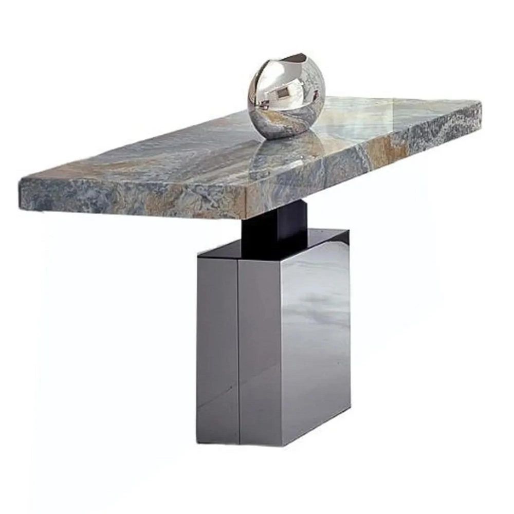 The Athena Console Table - Marble with Stainless Steel Base - Variation Available - crafted from Marble and Steel, available in Grey, Modern style, Rectangle shape. Free UK standard delivery included.
