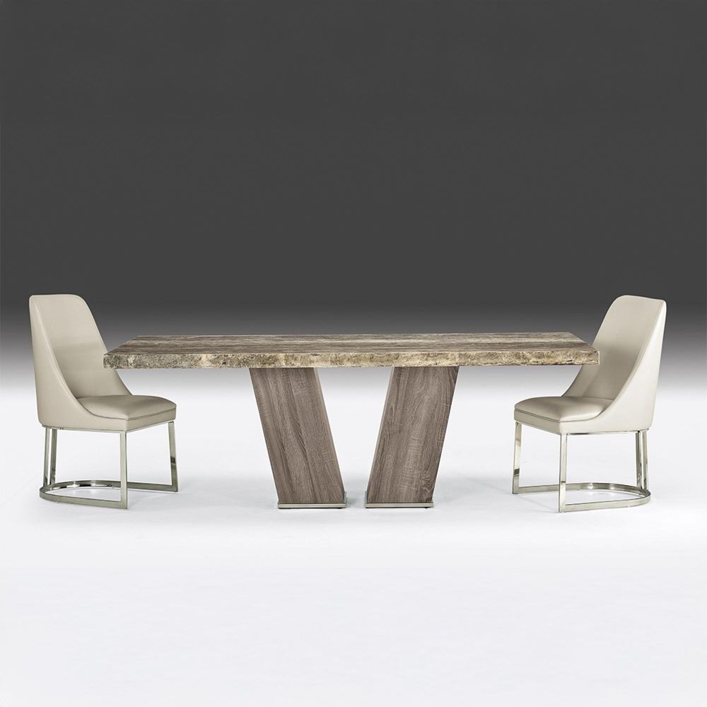 The Vertigo Dining Table - Marble with Wooden Pedestal Base - Variation Available - crafted from Marble, Wooden and Stainless Steel, available in Brown, Scandinavian style, Rectangle shape. Free UK standard delivery included.