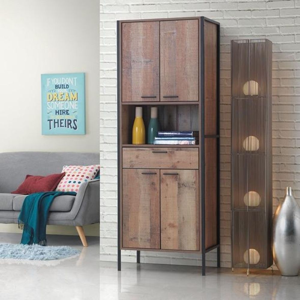 Industrial Storage Cabinet - Tall - Rustic Oak Effect