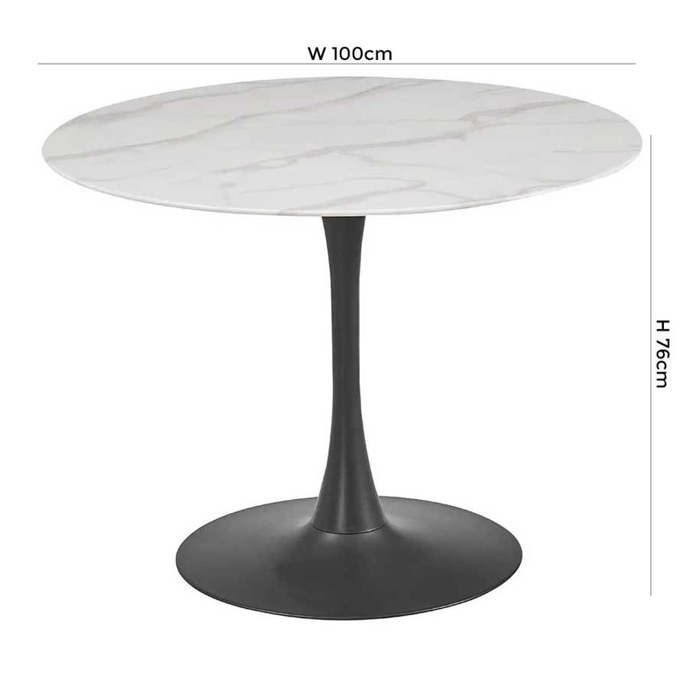 The Circe Round Dining Table - 2 Seater - 100cm - White Ceramic - crafted from Ceramic and Metal, finished in White Marble Effect and Charcoal, available in White, Modern style, Round shape. Free UK standard delivery included.